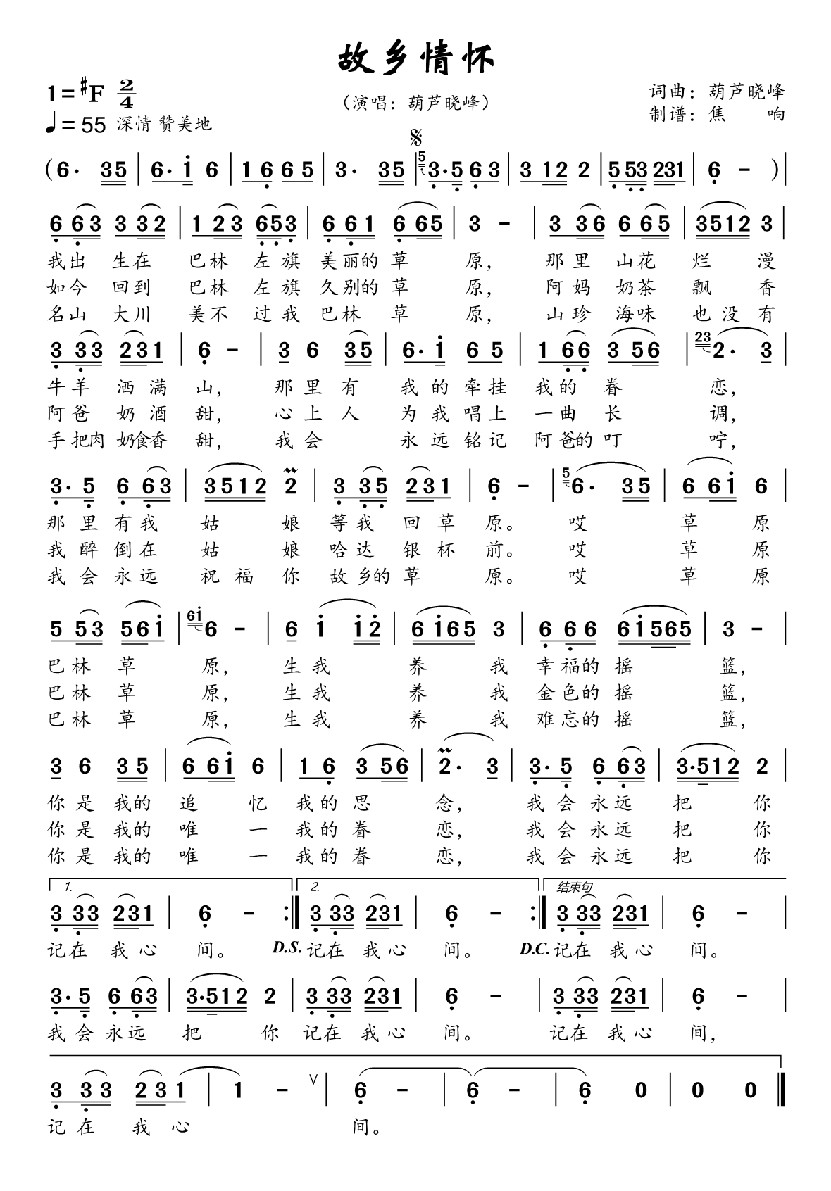 《葫芦晓峰《故乡情怀简谱》》内容来自于互联网,不能保证内容的准确性与完整性,仅供学习交流欣赏,请勿用于其它用途,内容版权归原作者及来源网站所有,如有侵犯到您的权益请来信告知,我们将及时删除。