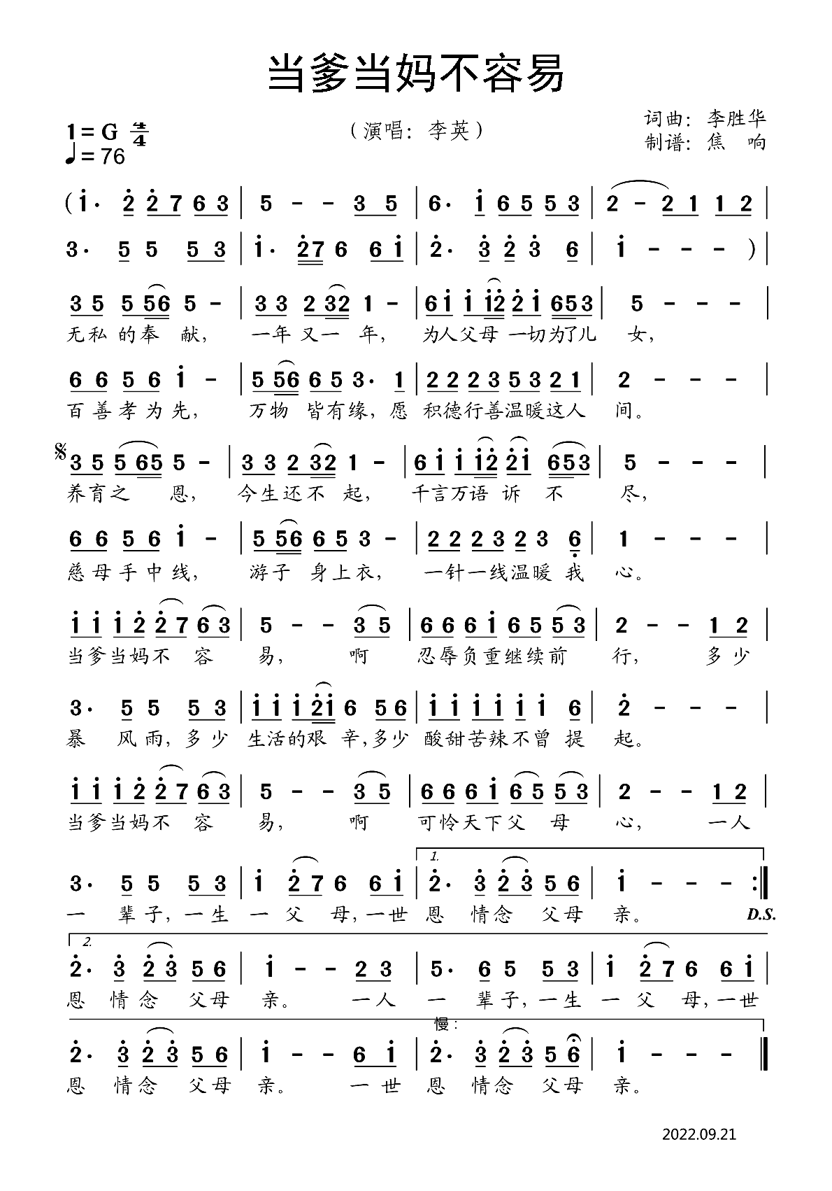 《李英《当爹当妈不容易简谱》》内容来自于互联网,不能保证内容的准确性与完整性,仅供学习交流欣赏,请勿用于其它用途,内容版权归原作者及来源网站所有,如有侵犯到您的权益请来信告知,我们将及时删除。