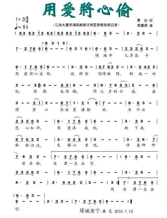 《汪明荃《用爱将心偷简谱》》内容来自于互联网,不能保证内容的准确性与完整性,仅供学习交流欣赏,请勿用于其它用途,内容版权归原作者及来源网站所有,如有侵犯到您的权益请来信告知,我们将及时删除。