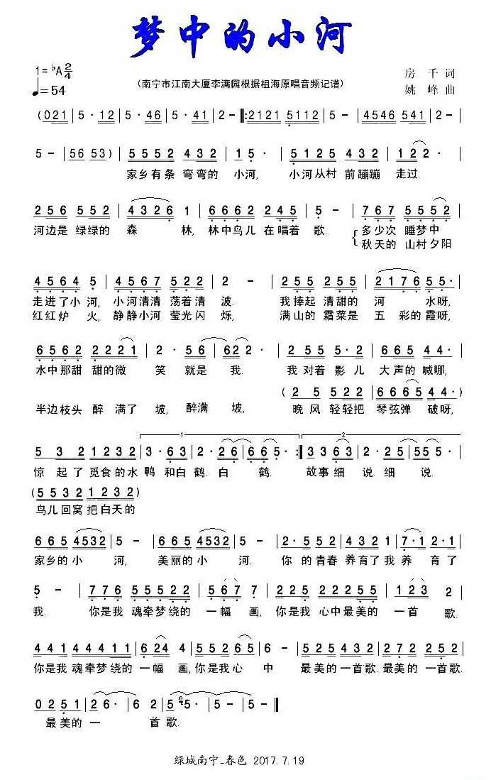祖海《梦中的小河简谱》