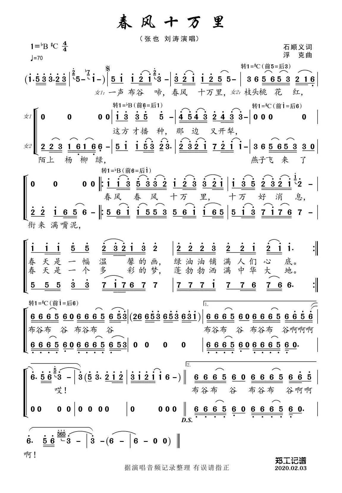 《张也/刘涛《春风十万里简谱》》内容来自于互联网,不能保证内容的准确性与完整性,仅供学习交流欣赏,请勿用于其它用途,内容版权归原作者及来源网站所有,如有侵犯到您的权益请来信告知,我们将及时删除。