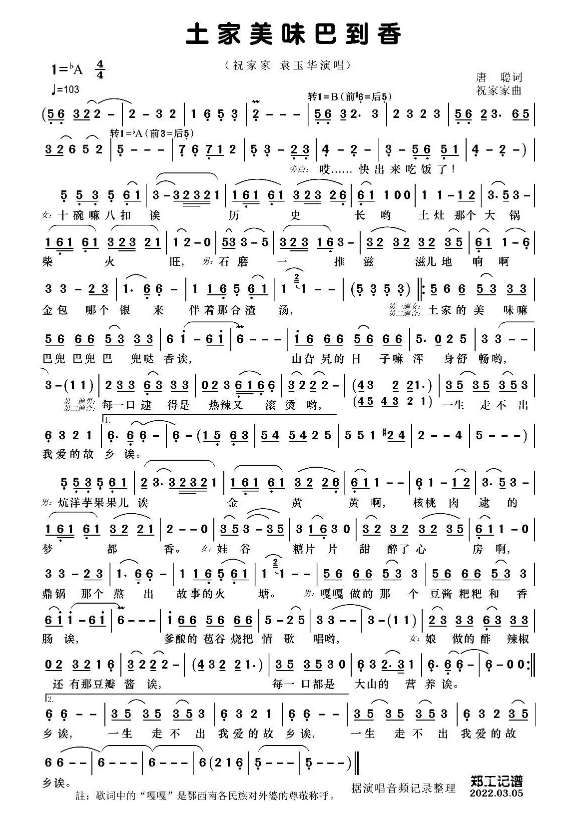 《祝家家/袁玉华《土家美味巴到香简谱》》内容来自于互联网,不能保证内容的准确性与完整性,仅供学习交流欣赏,请勿用于其它用途,内容版权归原作者及来源网站所有,如有侵犯到您的权益请来信告知,我们将及时删除。