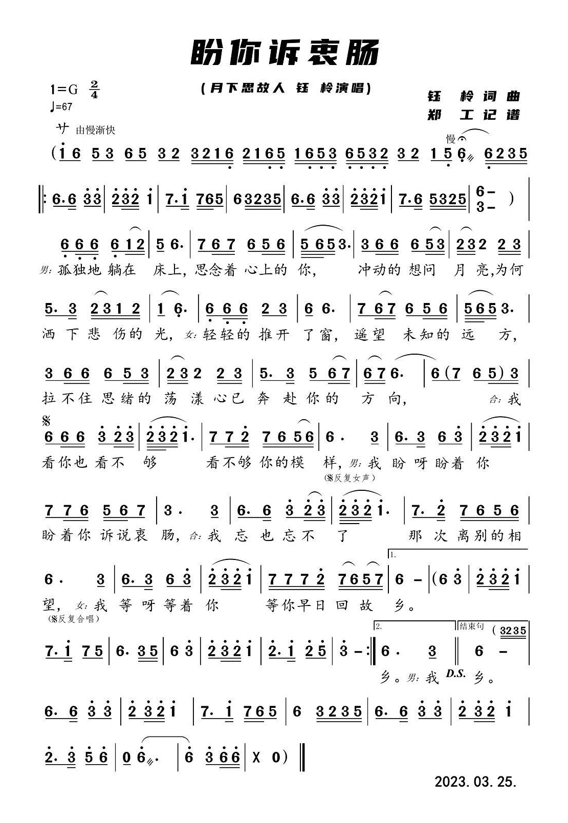 《月下思故人/钰柃《盼你诉衷肠简谱》》内容来自于互联网,不能保证内容的准确性与完整性,仅供学习交流欣赏,请勿用于其它用途,内容版权归原作者及来源网站所有,如有侵犯到您的权益请来信告知,我们将及时删除。