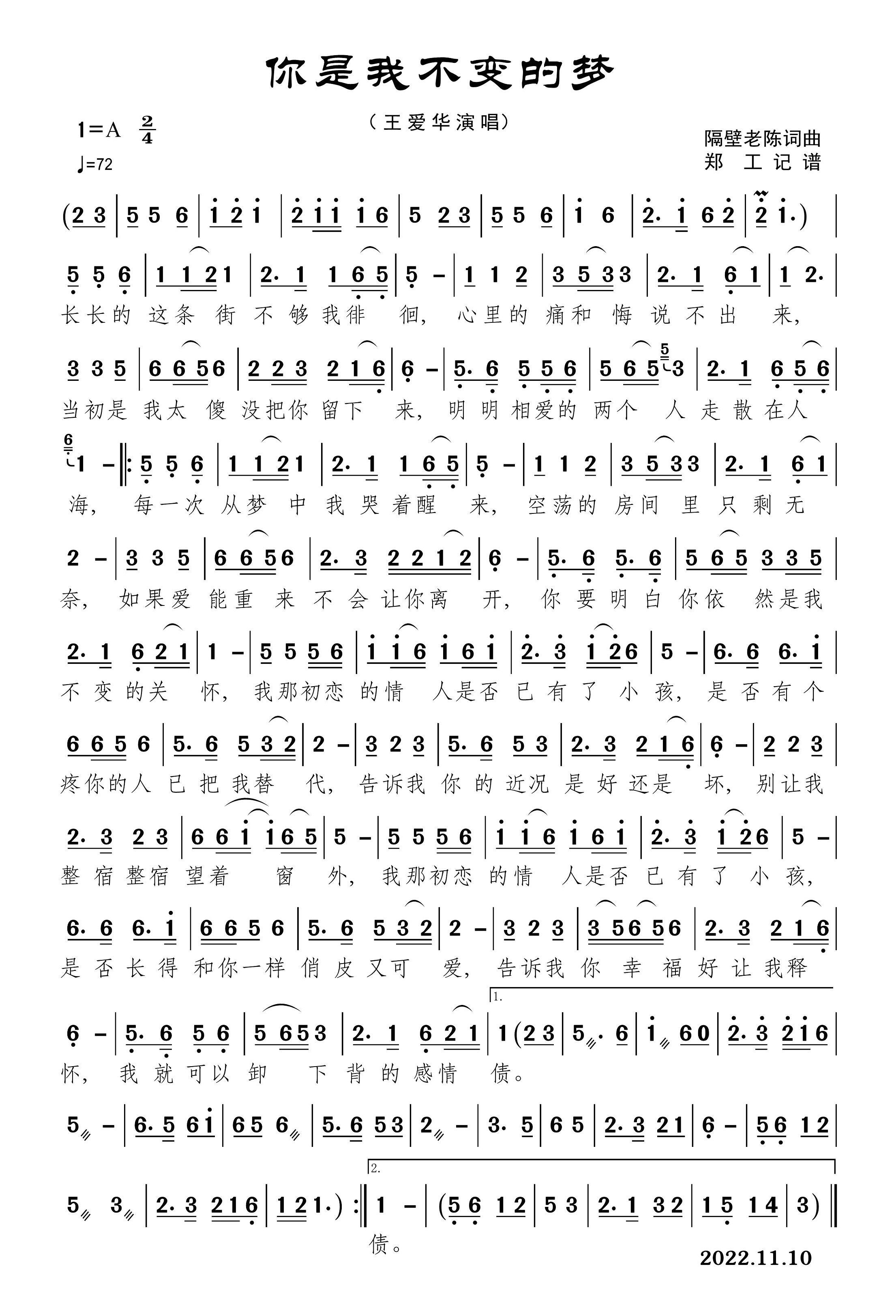 《王爱华《你是我不变的梦简谱》》内容来自于互联网,不能保证内容的准确性与完整性,仅供学习交流欣赏,请勿用于其它用途,内容版权归原作者及来源网站所有,如有侵犯到您的权益请来信告知,我们将及时删除。