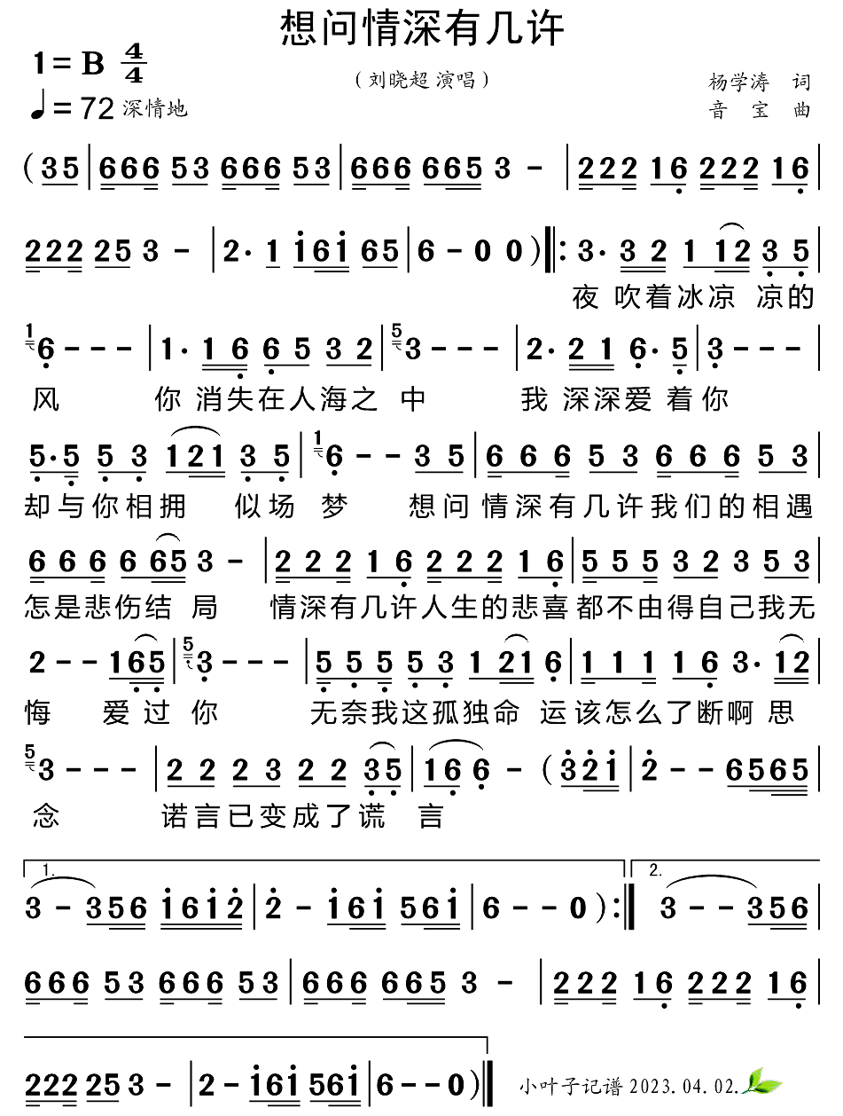 刘晓超《想问情深有几许简谱》