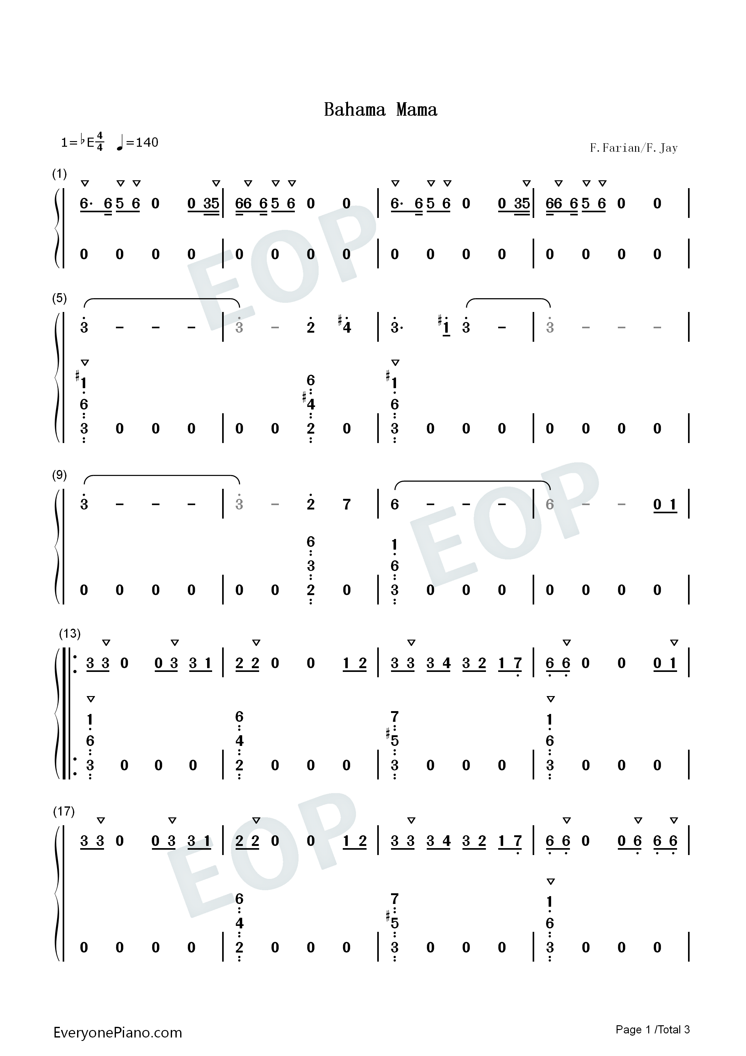 《Boney M.《Bahama Mama简谱》》内容来自于互联网,不能保证内容的准确性与完整性,仅供学习交流欣赏,请勿用于其它用途,内容版权归原作者及来源网站所有,如有侵犯到您的权益请来信告知,我们将及时删除。