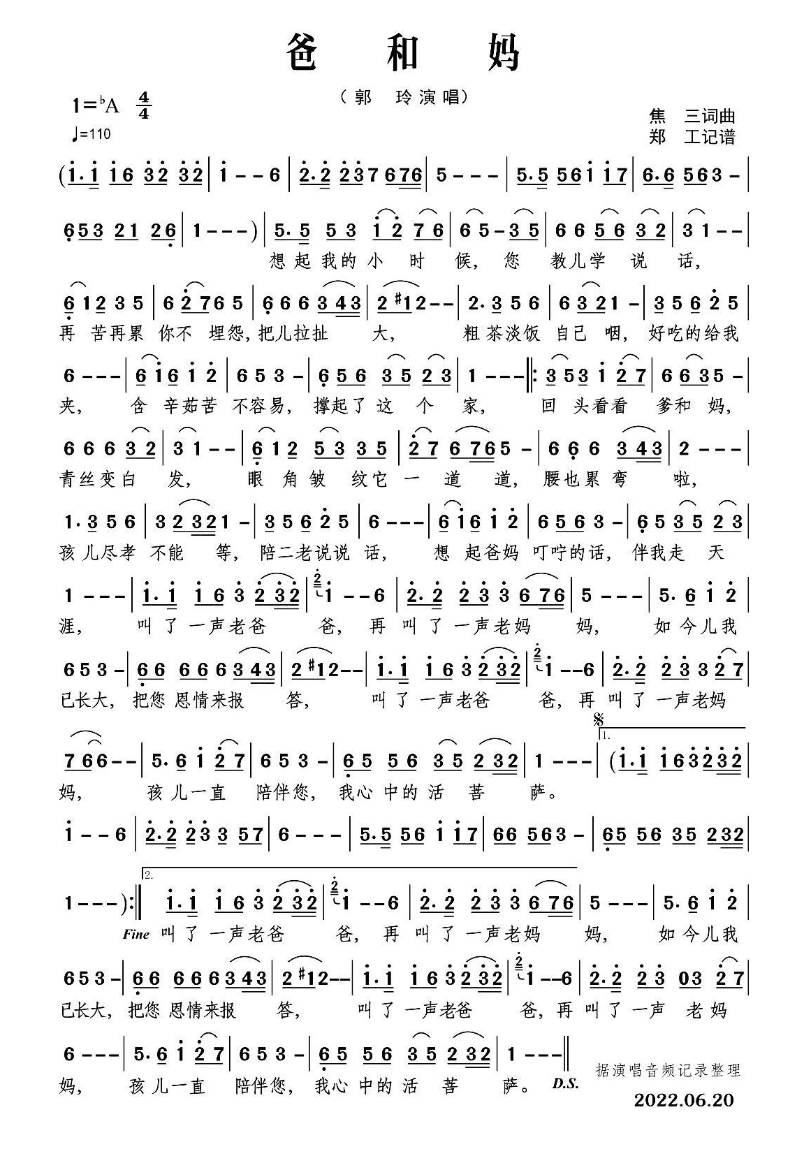 郭玲《爸和妈简谱》