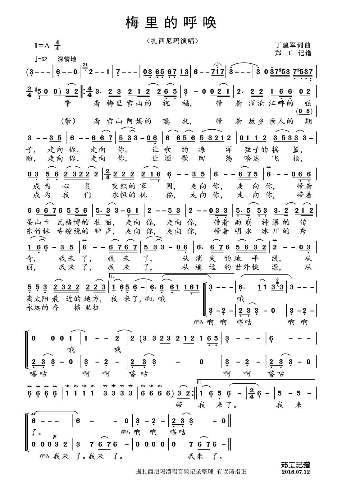 《扎西尼玛《梅里的呼唤简谱》》内容来自于互联网,不能保证内容的准确性与完整性,仅供学习交流欣赏,请勿用于其它用途,内容版权归原作者及来源网站所有,如有侵犯到您的权益请来信告知,我们将及时删除。