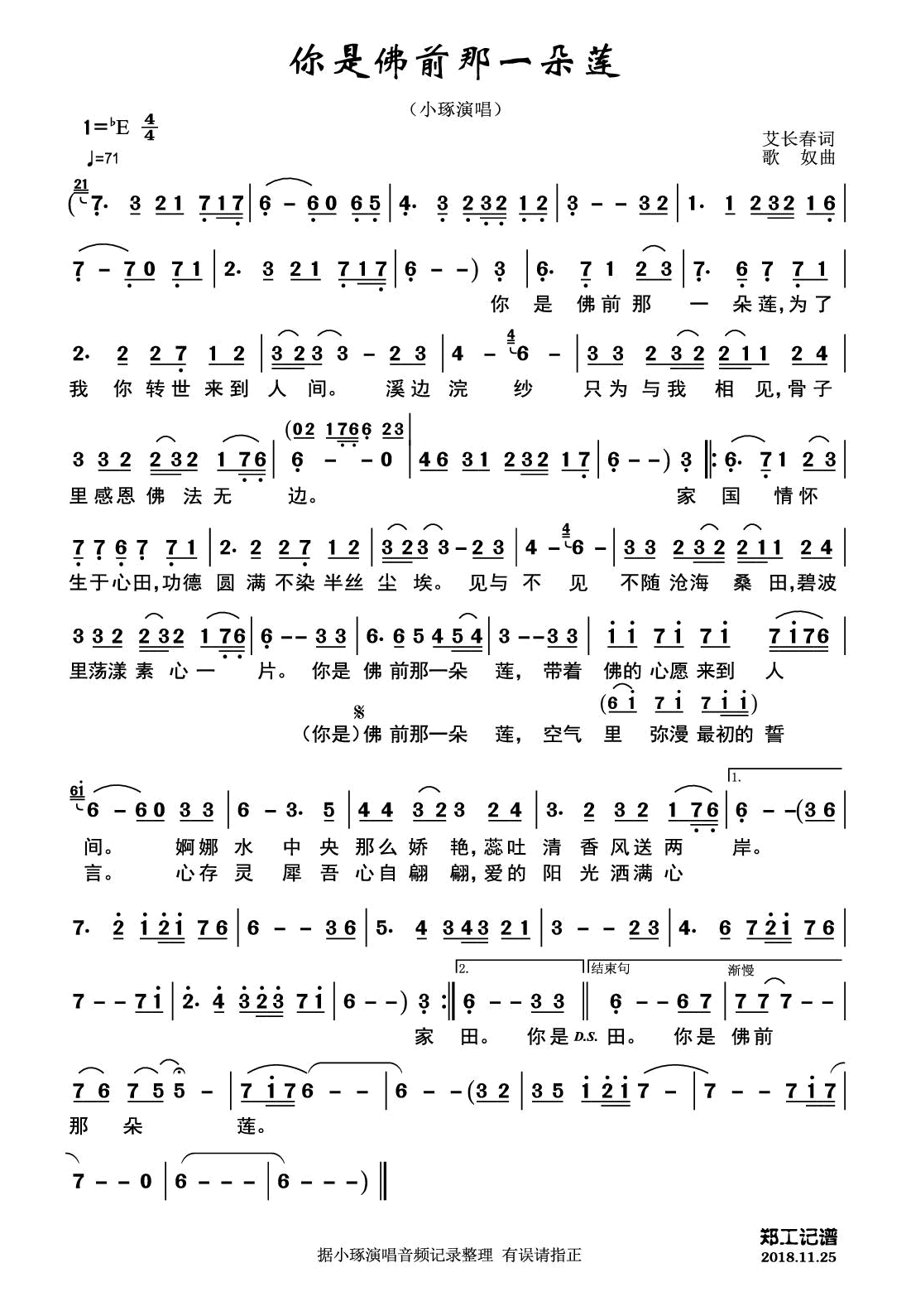 《小琢《你是佛前那一朵莲简谱》》内容来自于互联网,不能保证内容的准确性与完整性,仅供学习交流欣赏,请勿用于其它用途,内容版权归原作者及来源网站所有,如有侵犯到您的权益请来信告知,我们将及时删除。