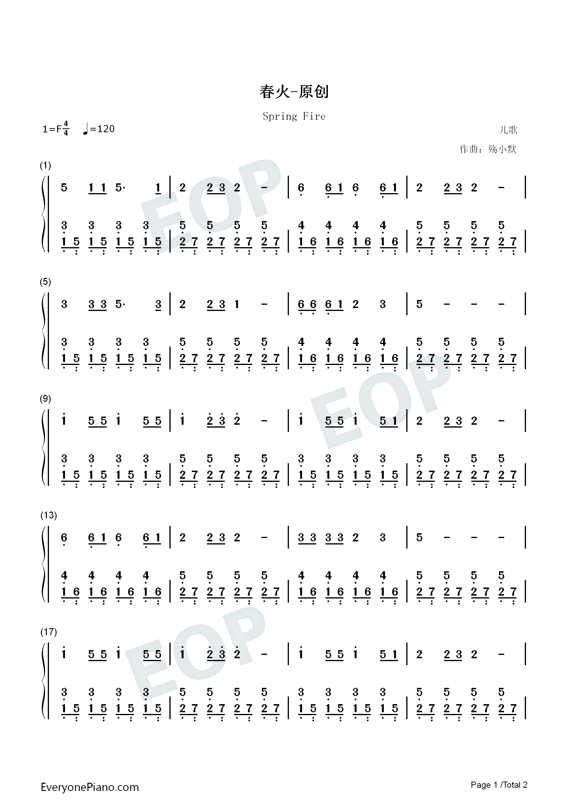 《殇小默《春火简谱》》内容来自于互联网,不能保证内容的准确性与完整性,仅供学习交流欣赏,请勿用于其它用途,内容版权归原作者及来源网站所有,如有侵犯到您的权益请来信告知,我们将及时删除。