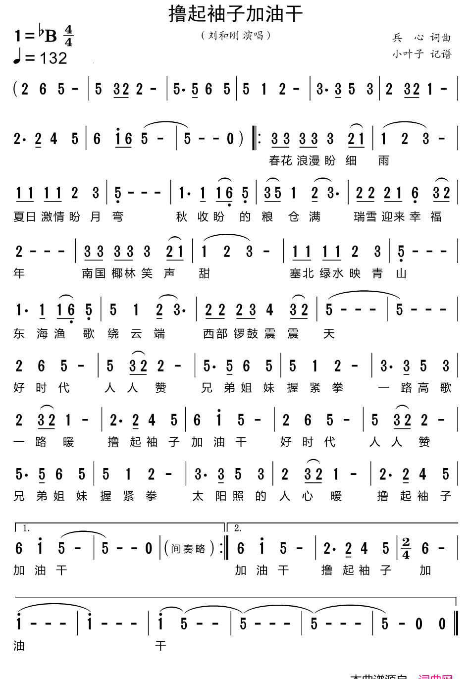 《刘和刚《撸起袖子加油干简谱》》内容来自于互联网,不能保证内容的准确性与完整性,仅供学习交流欣赏,请勿用于其它用途,内容版权归原作者及来源网站所有,如有侵犯到您的权益请来信告知,我们将及时删除。