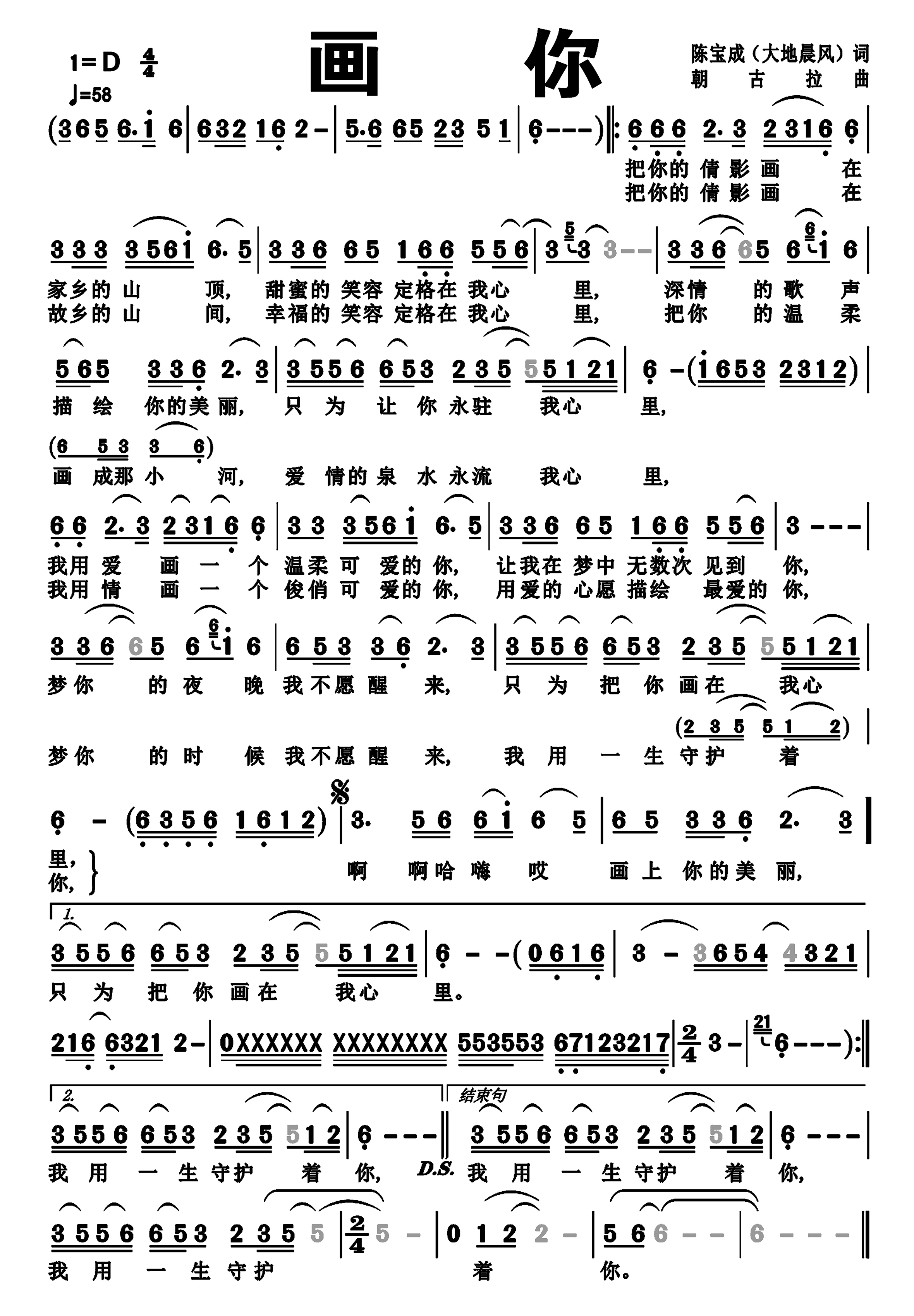 《科尔沁夫/哈妮《画你简谱》》内容来自于互联网,不能保证内容的准确性与完整性,仅供学习交流欣赏,请勿用于其它用途,内容版权归原作者及来源网站所有,如有侵犯到您的权益请来信告知,我们将及时删除。