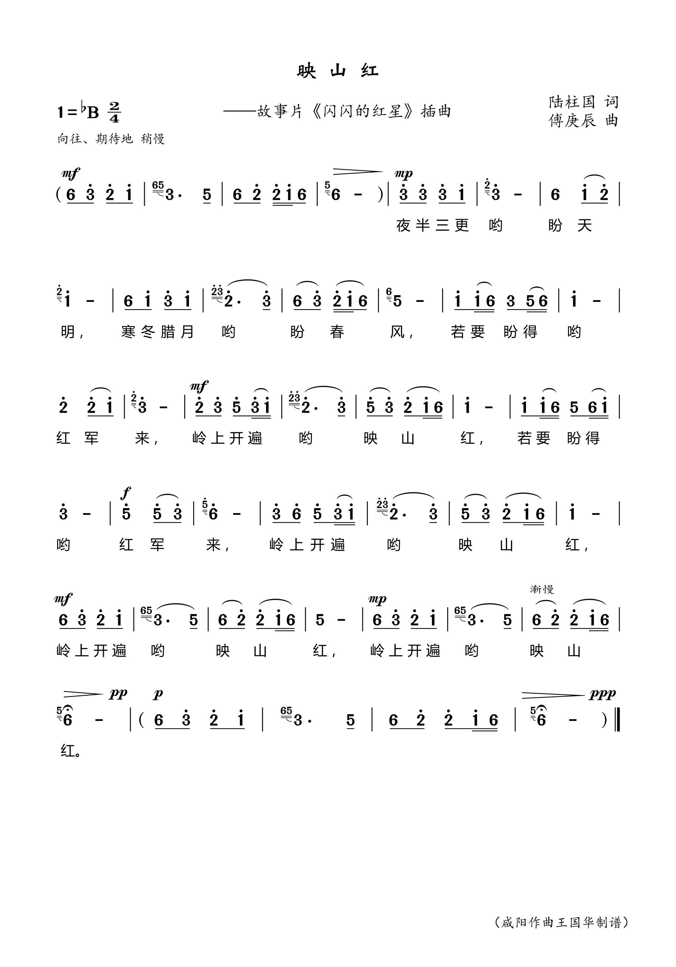 《宋祖英《映山红简谱》》内容来自于互联网,不能保证内容的准确性与完整性,仅供学习交流欣赏,请勿用于其它用途,内容版权归原作者及来源网站所有,如有侵犯到您的权益请来信告知,我们将及时删除。