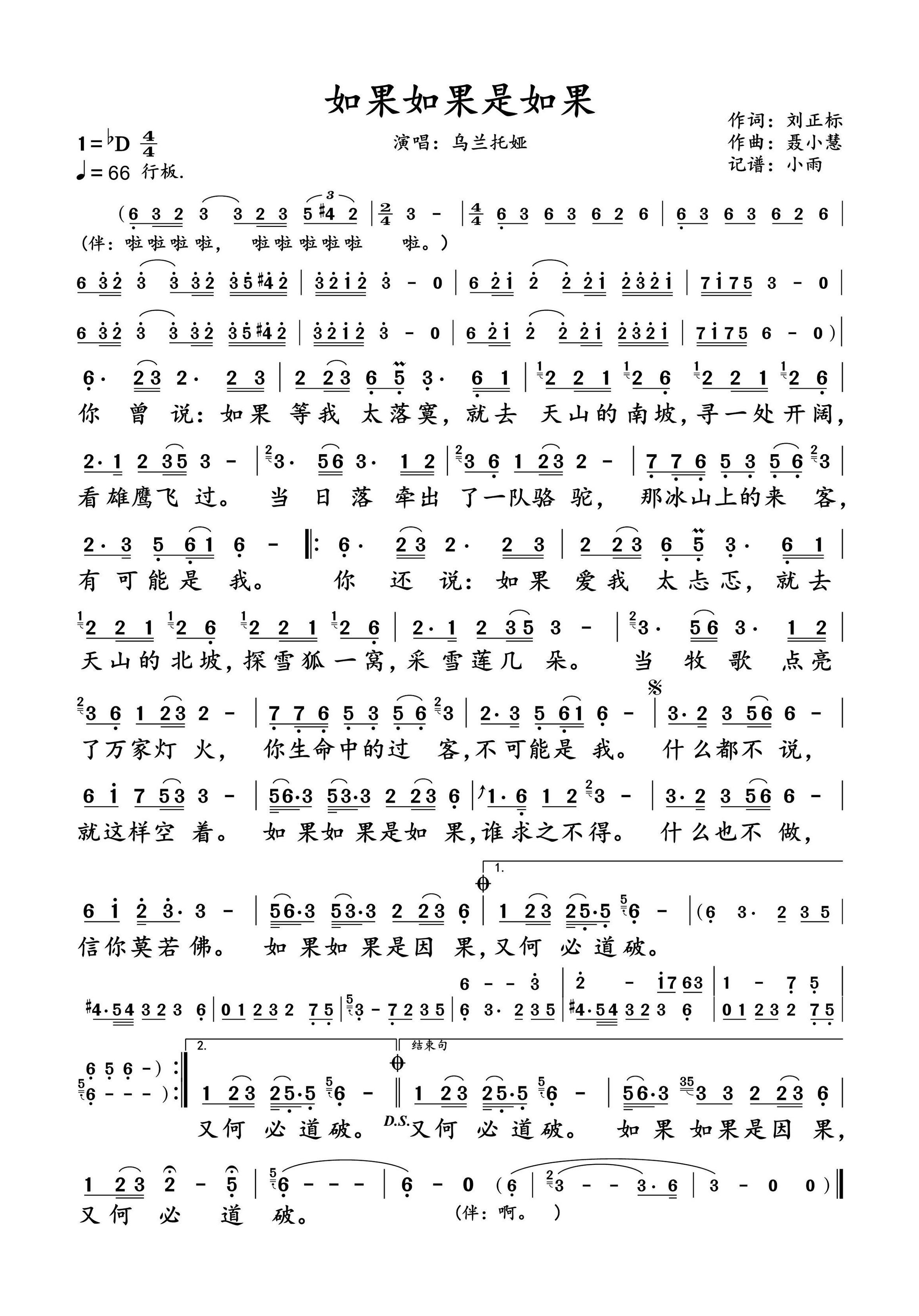 《乌兰托娅《如果如果是如果简谱》》内容来自于互联网,不能保证内容的准确性与完整性,仅供学习交流欣赏,请勿用于其它用途,内容版权归原作者及来源网站所有,如有侵犯到您的权益请来信告知,我们将及时删除。