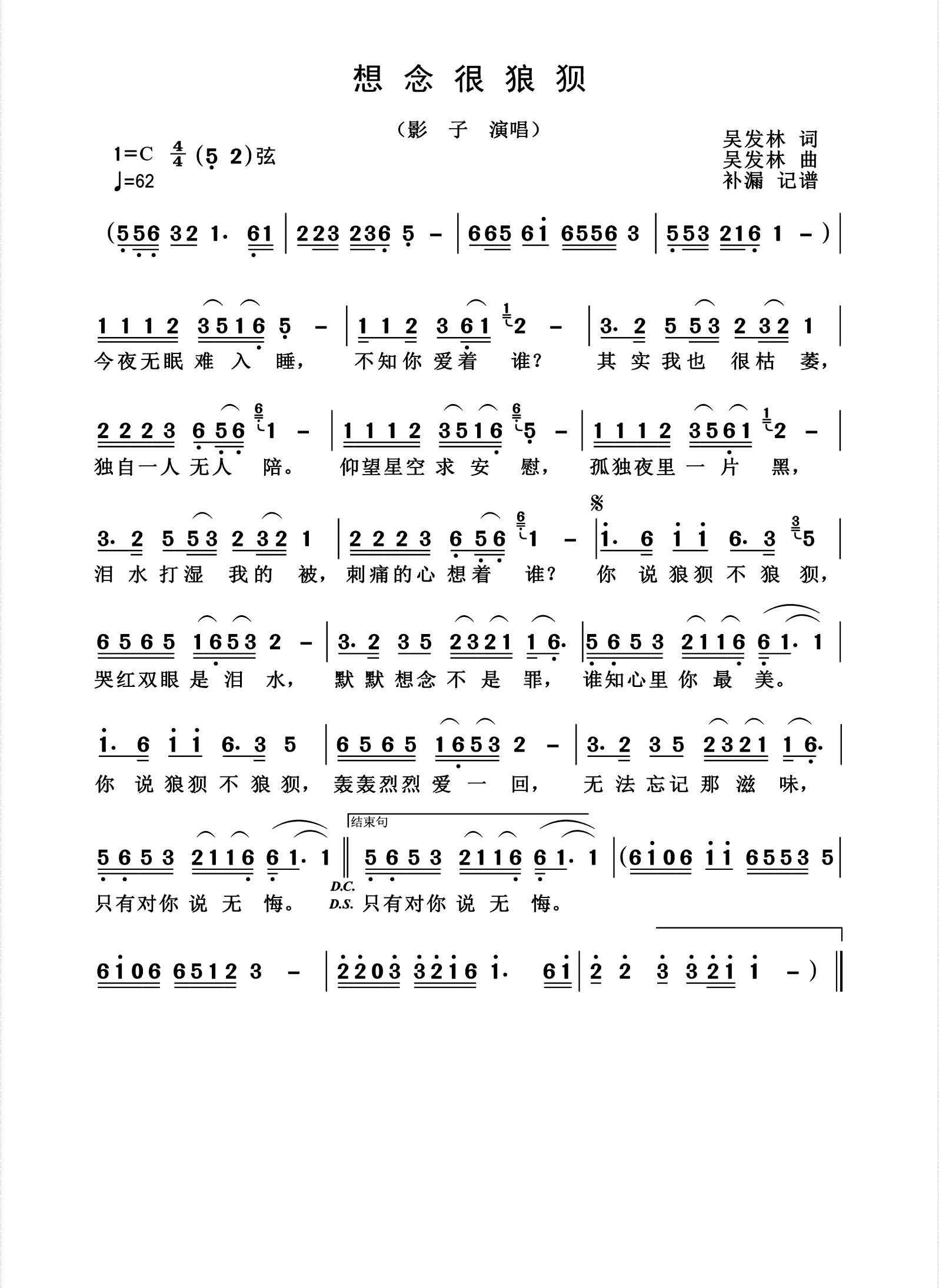 《影子《想念很狼狈简谱》》内容来自于互联网,不能保证内容的准确性与完整性,仅供学习交流欣赏,请勿用于其它用途,内容版权归原作者及来源网站所有,如有侵犯到您的权益请来信告知,我们将及时删除。