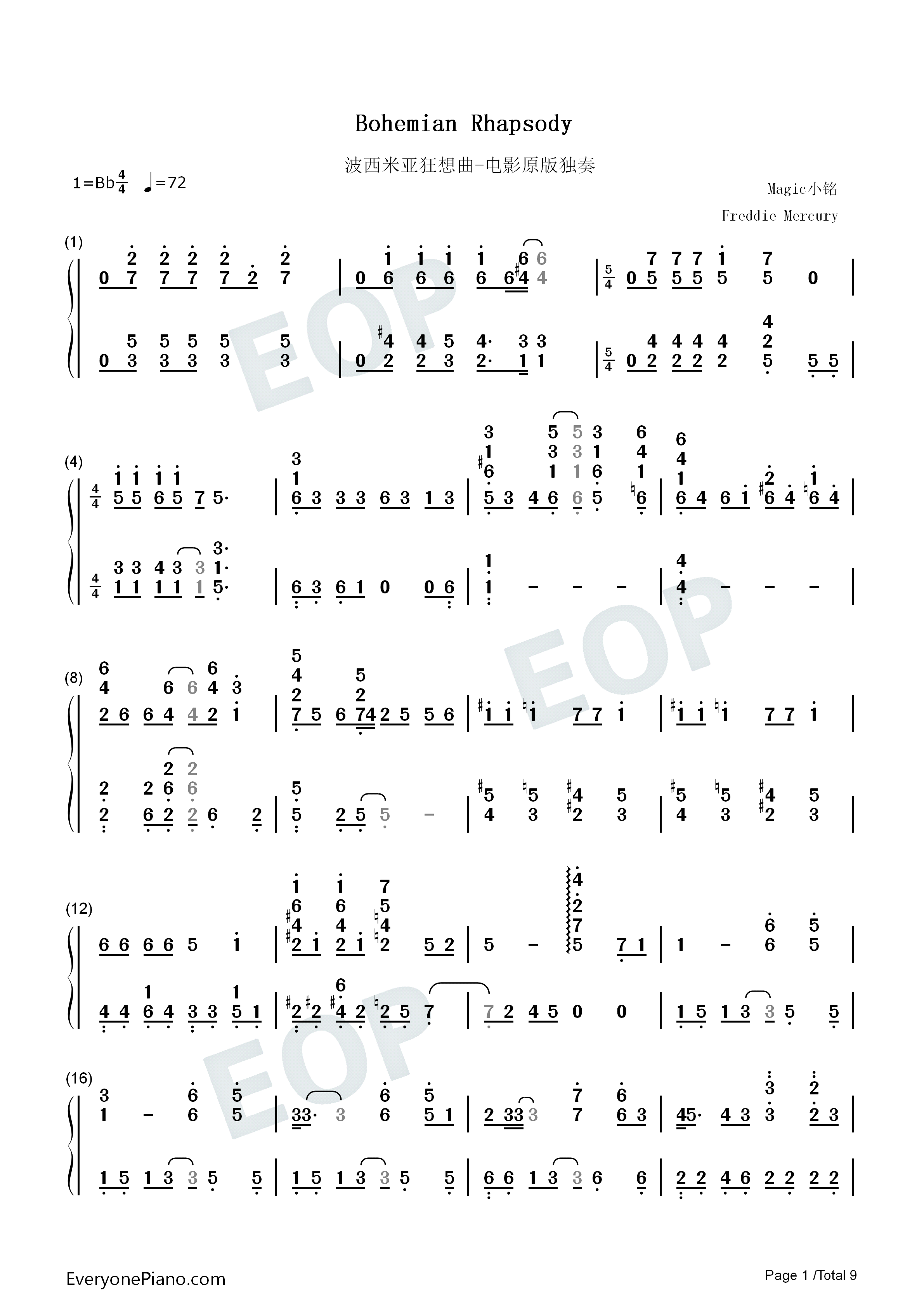《皇后乐队 Queen《波西米亚狂想曲简谱》》内容来自于互联网,不能保证内容的准确性与完整性,仅供学习交流欣赏,请勿用于其它用途,内容版权归原作者及来源网站所有,如有侵犯到您的权益请来信告知,我们将及时删除。