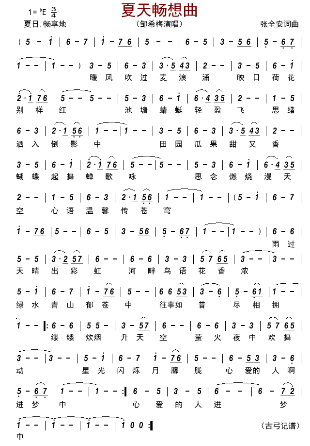 《邹希梅《夏天畅想曲简谱》》内容来自于互联网,不能保证内容的准确性与完整性,仅供学习交流欣赏,请勿用于其它用途,内容版权归原作者及来源网站所有,如有侵犯到您的权益请来信告知,我们将及时删除。
