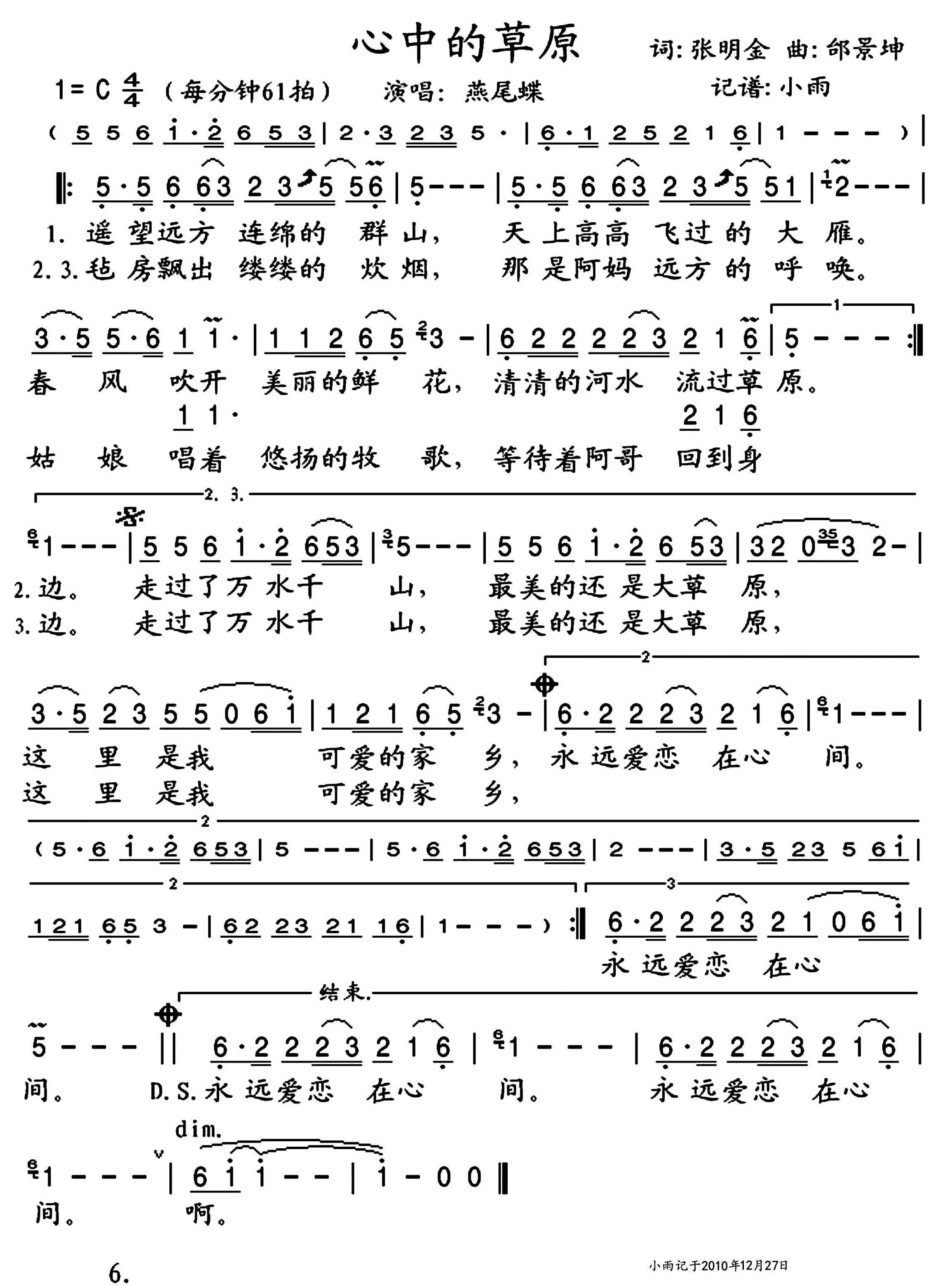 《燕尾蝶《心中的草原简谱》》内容来自于互联网,不能保证内容的准确性与完整性,仅供学习交流欣赏,请勿用于其它用途,内容版权归原作者及来源网站所有,如有侵犯到您的权益请来信告知,我们将及时删除。