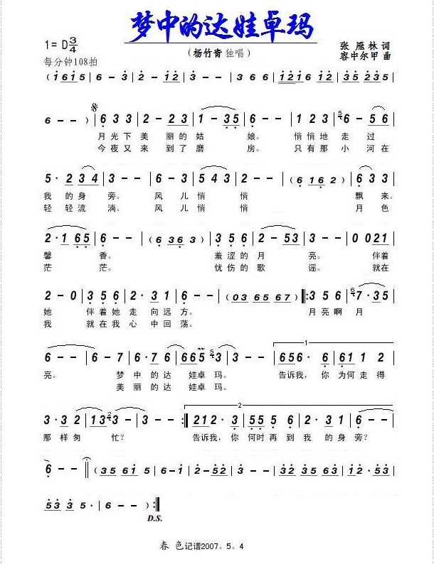杨竹青《梦中的达娃卓玛简谱》