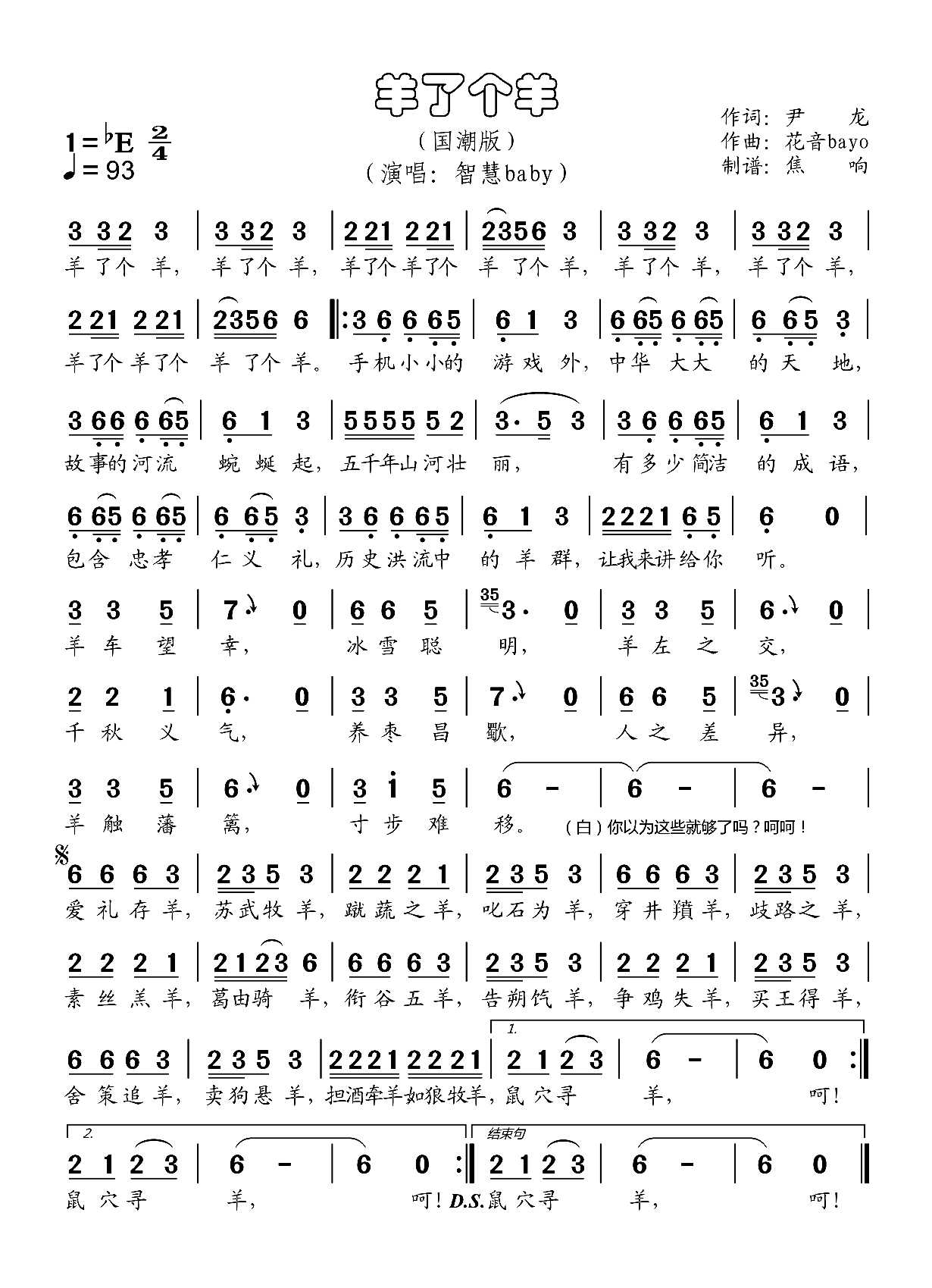本文标题 《智慧baby《羊了个羊简谱》》,网址:https://www.21qupu.com/jianpu/21807.html