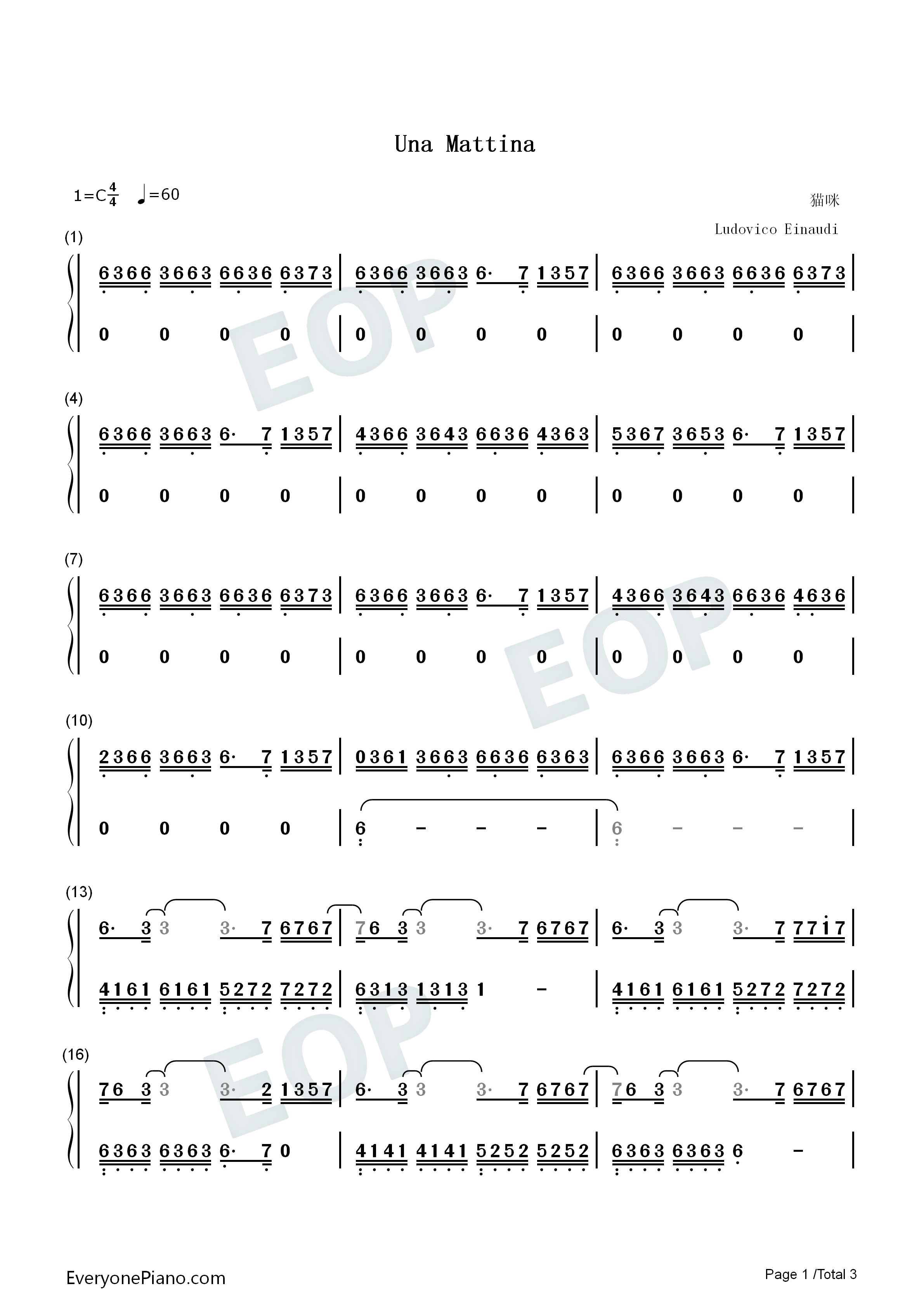 《Ludovico Einaudi《Una Mattina简谱》》内容来自于互联网,不能保证内容的准确性与完整性,仅供学习交流欣赏,请勿用于其它用途,内容版权归原作者及来源网站所有,如有侵犯到您的权益请来信告知,我们将及时删除。