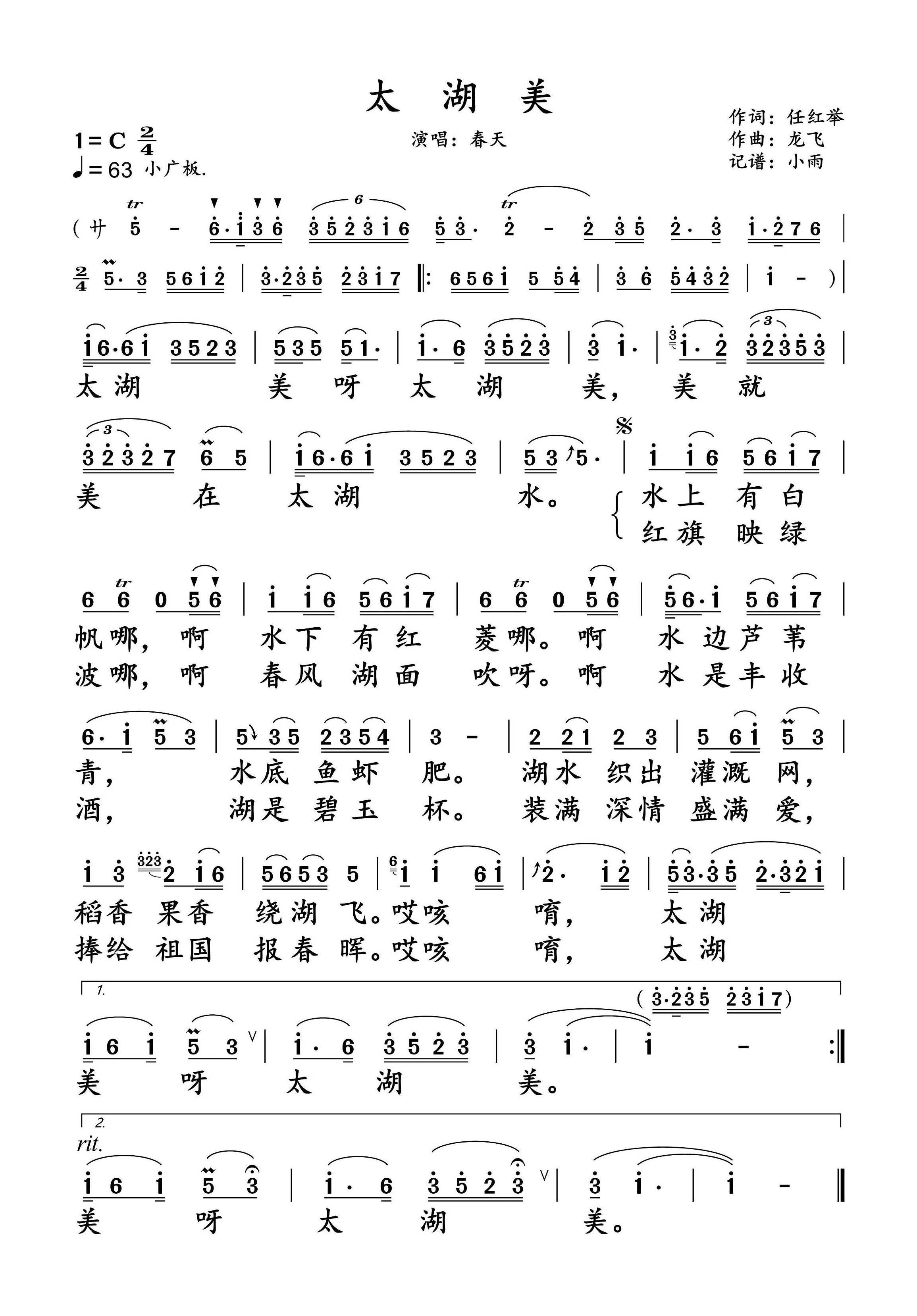 春天《太湖美简谱》