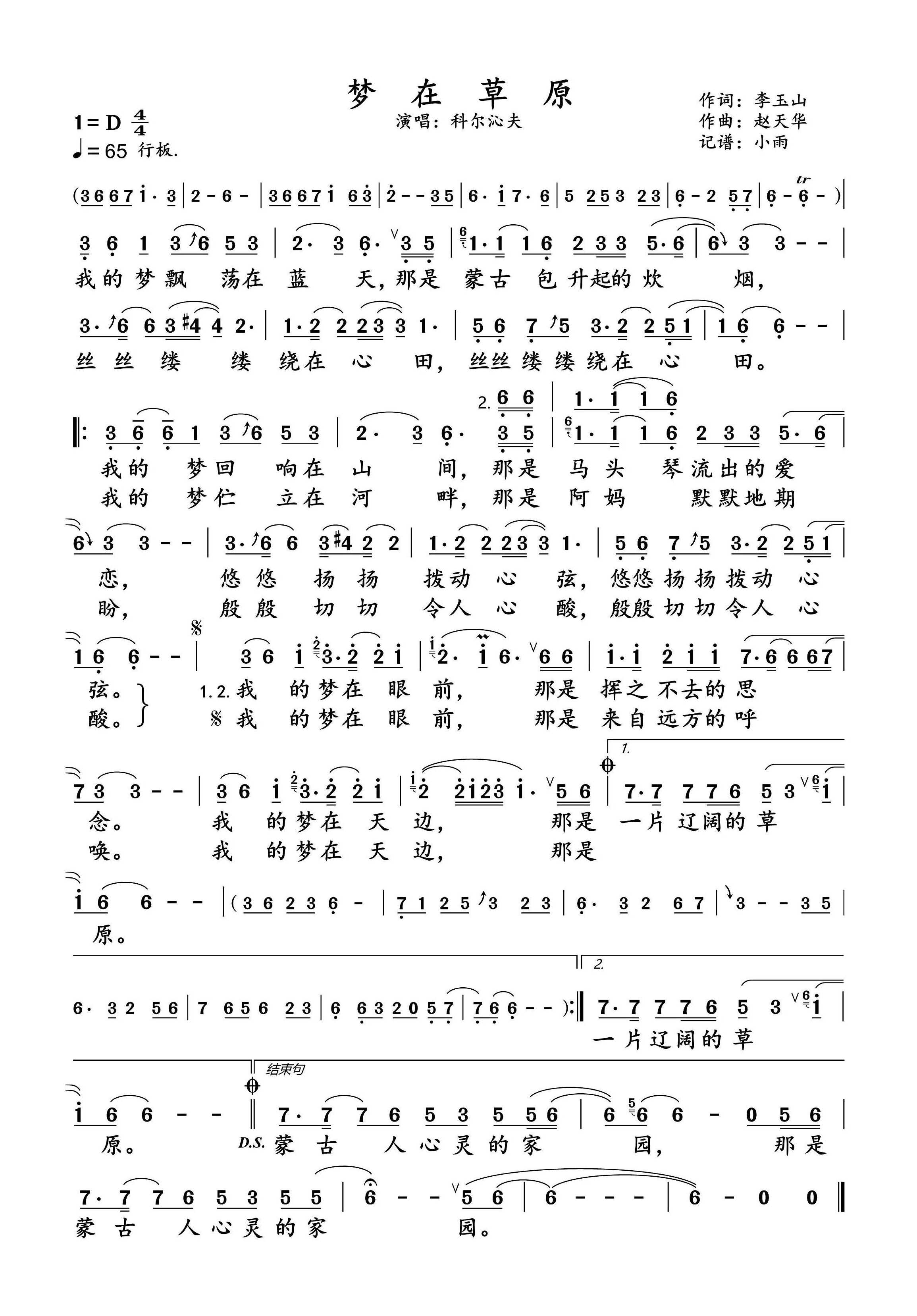 《科尔沁夫《梦在草原简谱》》内容来自于互联网,不能保证内容的准确性与完整性,仅供学习交流欣赏,请勿用于其它用途,内容版权归原作者及来源网站所有,如有侵犯到您的权益请来信告知,我们将及时删除。