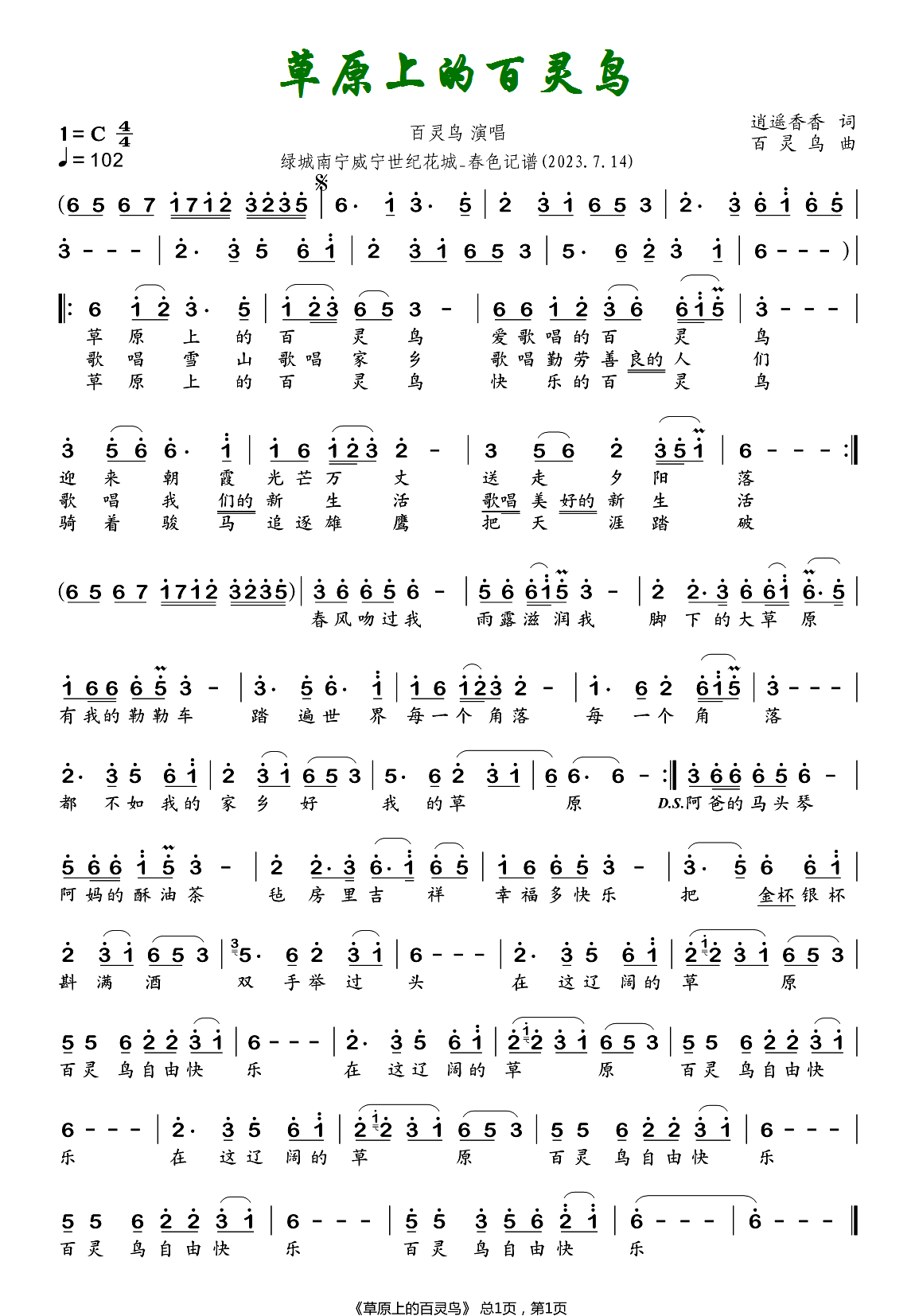 《百灵鸟《草原上的百灵鸟简谱》》内容来自于互联网,不能保证内容的准确性与完整性,仅供学习交流欣赏,请勿用于其它用途,内容版权归原作者及来源网站所有,如有侵犯到您的权益请来信告知,我们将及时删除。