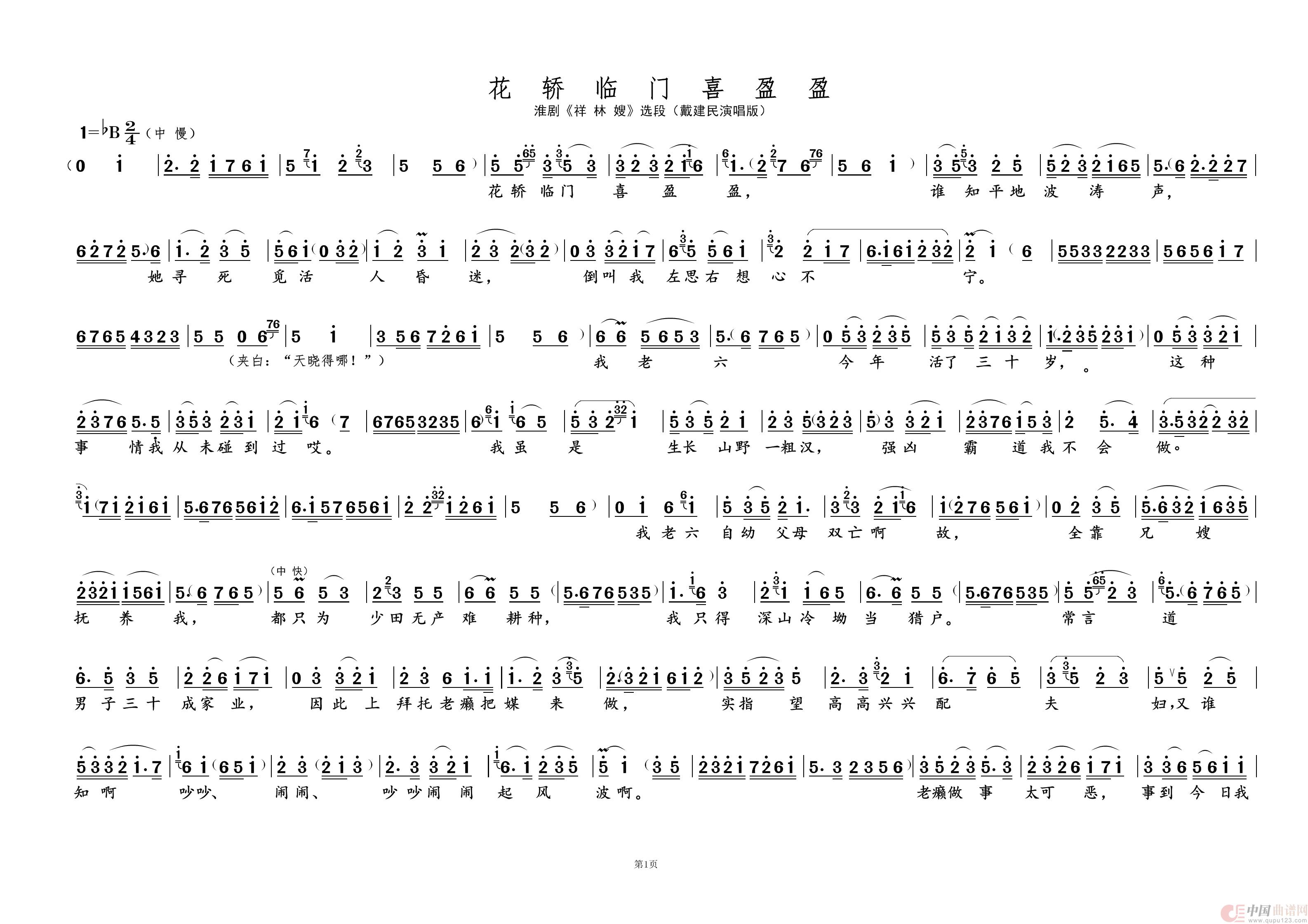 《戴逮民《花轿临门喜盈盈①(淮剧《祥林嫂》选段)简谱》》内容来自于互联网,不能保证内容的准确性与完整性,仅供学习交流欣赏,请勿用于其它用途,内容版权归原作者及来源网站所有,如有侵犯到您的权益请来信告知,我们将及时删除。