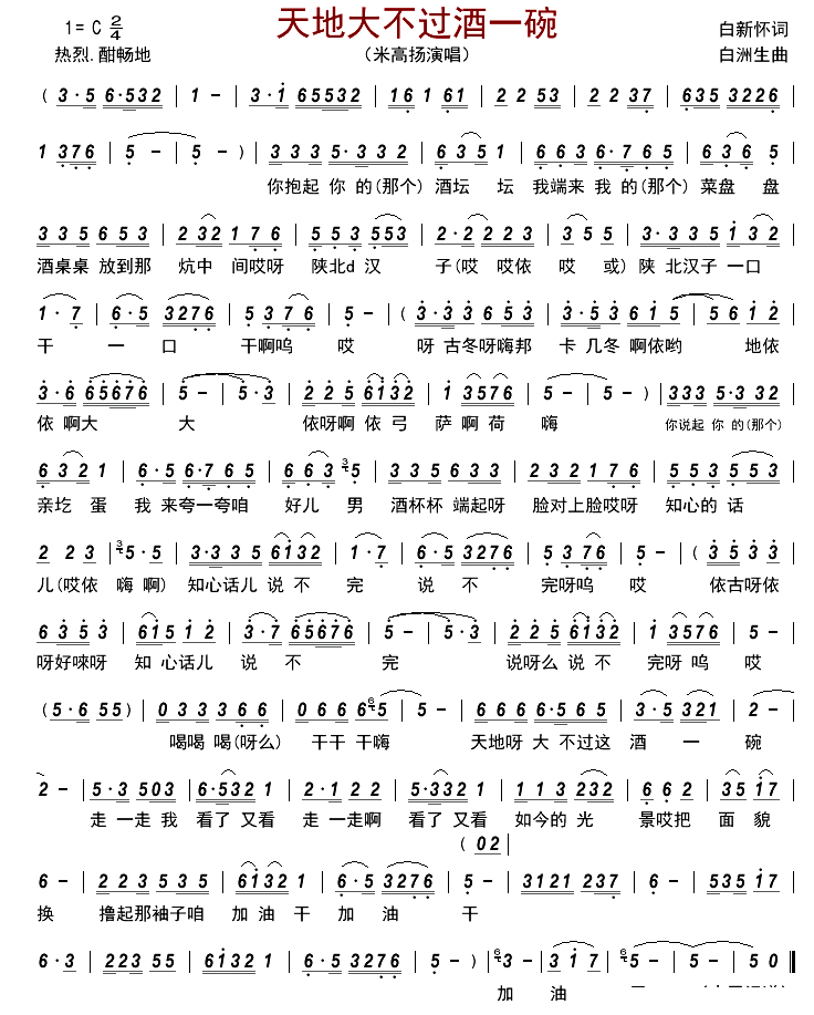 《米高扬《天地大不过酒一碗简谱》》内容来自于互联网,不能保证内容的准确性与完整性,仅供学习交流欣赏,请勿用于其它用途,内容版权归原作者及来源网站所有,如有侵犯到您的权益请来信告知,我们将及时删除。