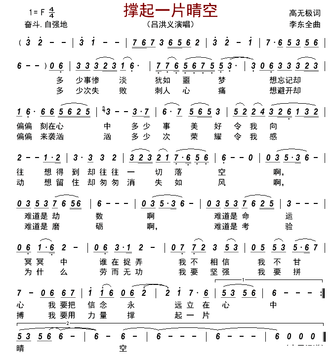 《吕洪义《撑起一片晴空简谱》》内容来自于互联网,不能保证内容的准确性与完整性,仅供学习交流欣赏,请勿用于其它用途,内容版权归原作者及来源网站所有,如有侵犯到您的权益请来信告知,我们将及时删除。