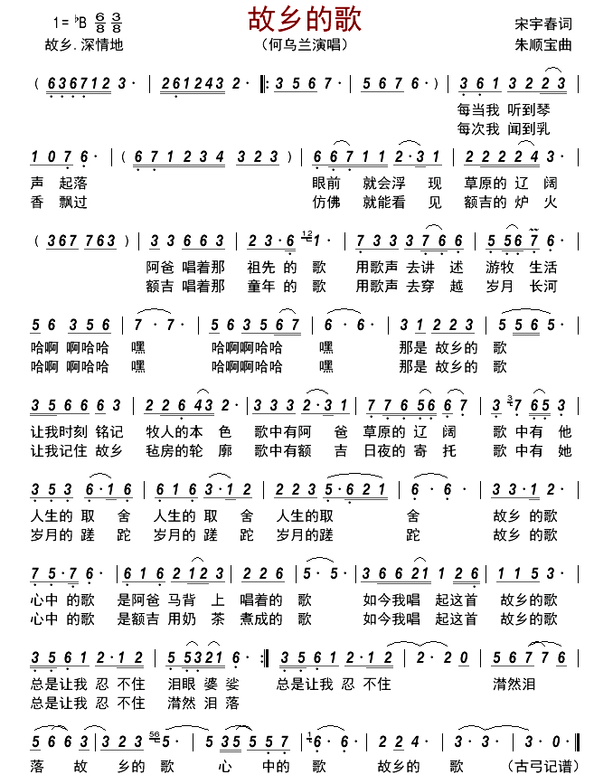 《何乌兰《故乡的歌简谱》》内容来自于互联网,不能保证内容的准确性与完整性,仅供学习交流欣赏,请勿用于其它用途,内容版权归原作者及来源网站所有,如有侵犯到您的权益请来信告知,我们将及时删除。