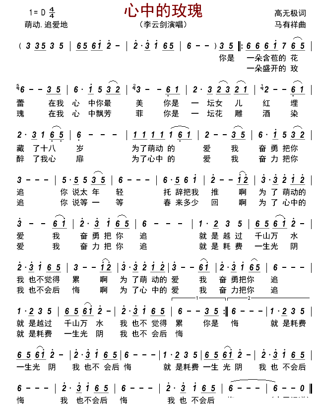 《李云剑《心中的玫瑰简谱》》内容来自于互联网,不能保证内容的准确性与完整性,仅供学习交流欣赏,请勿用于其它用途,内容版权归原作者及来源网站所有,如有侵犯到您的权益请来信告知,我们将及时删除。