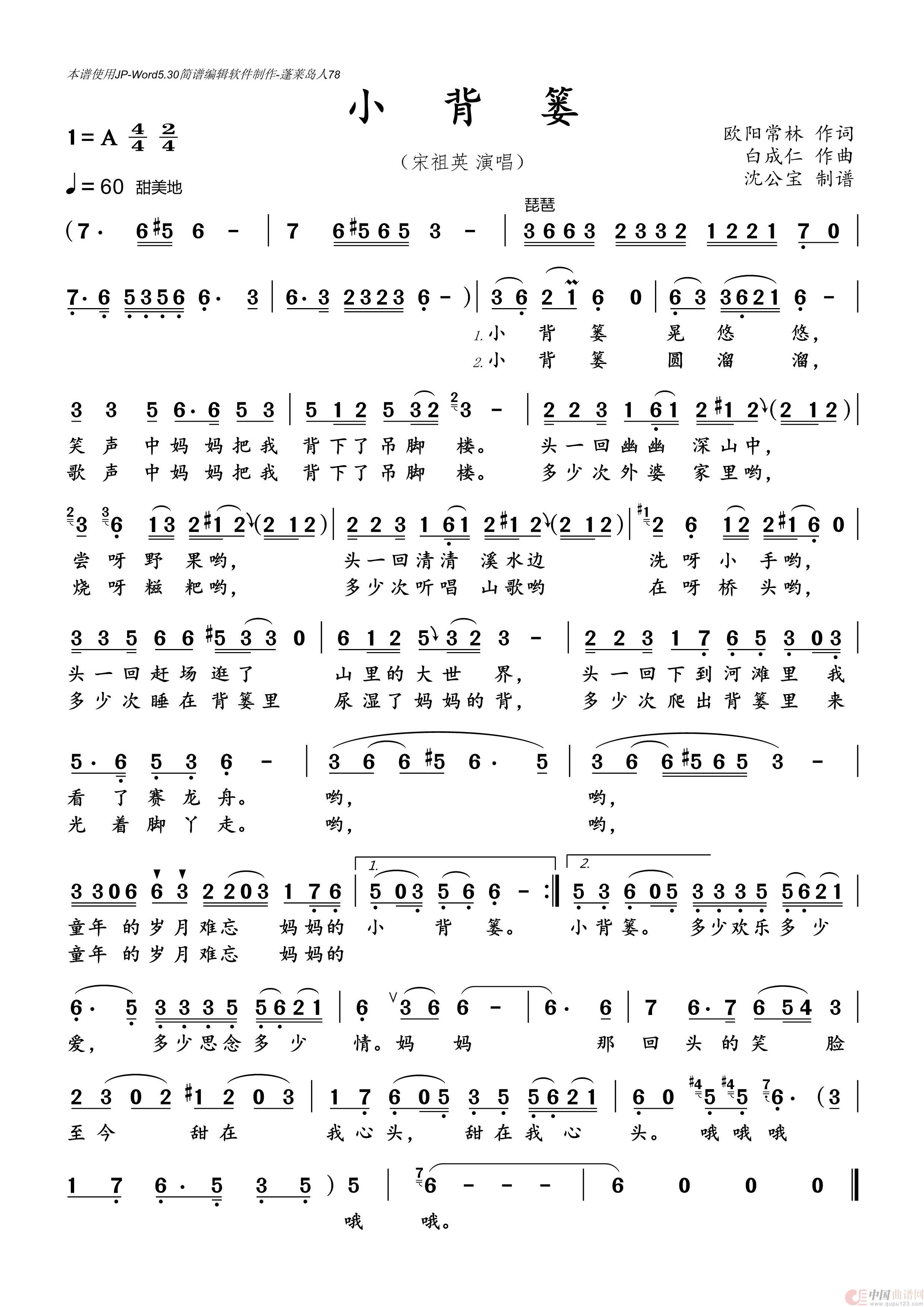 《宋祖英《小背篓简谱》》内容来自于互联网,不能保证内容的准确性与完整性,仅供学习交流欣赏,请勿用于其它用途,内容版权归原作者及来源网站所有,如有侵犯到您的权益请来信告知,我们将及时删除。