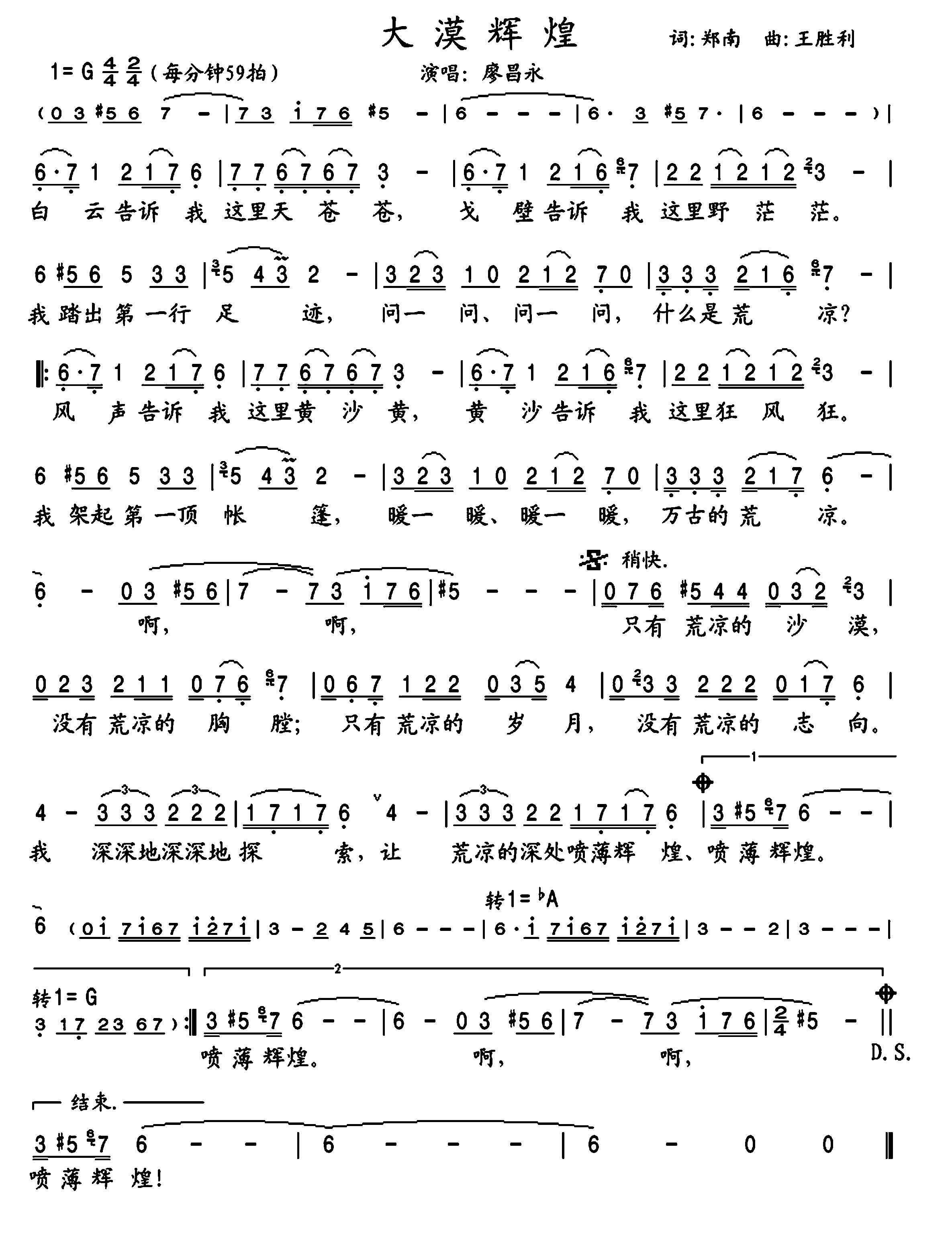 廖昌永《大漠辉煌简谱》