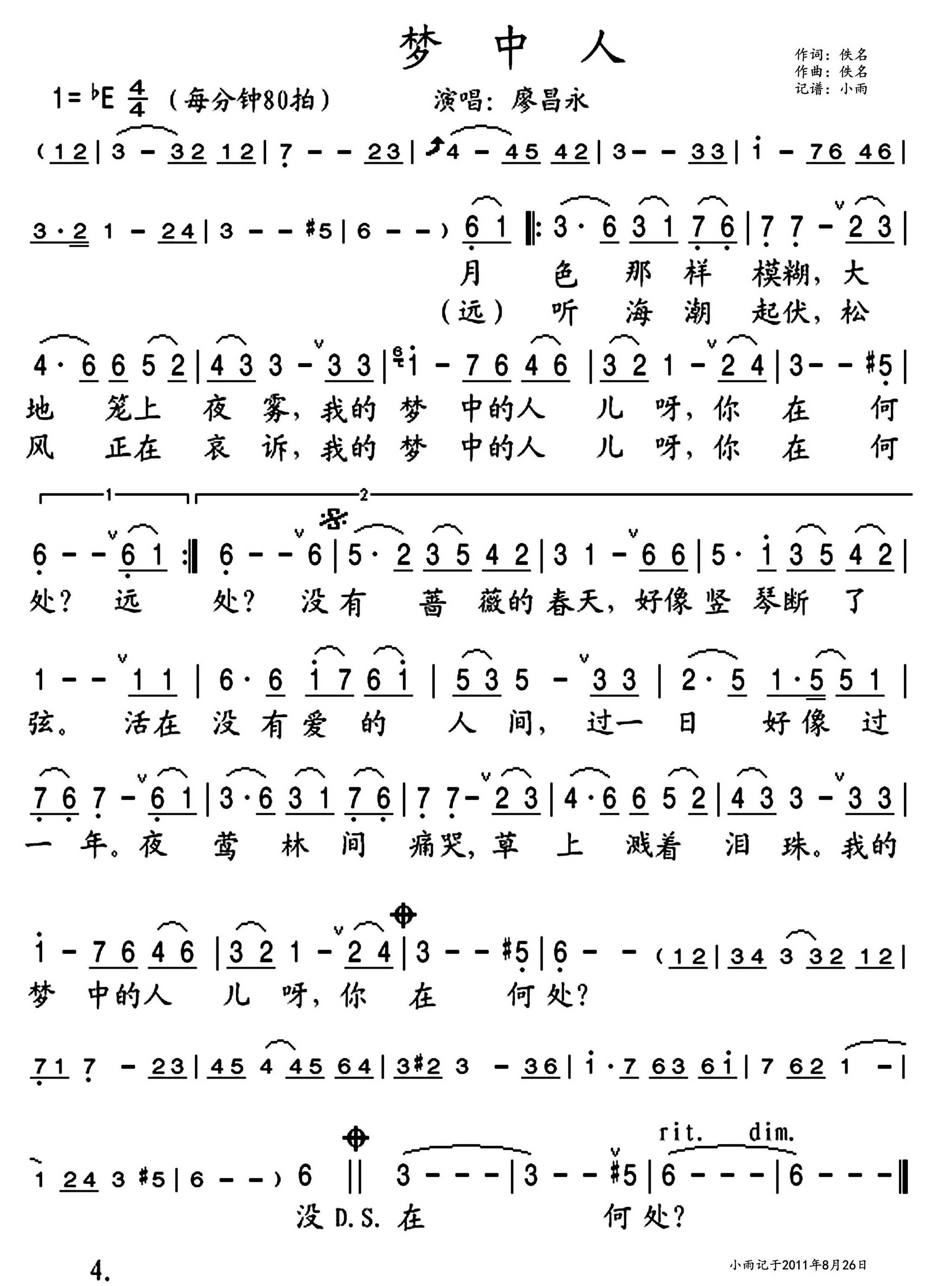 本文标题 《廖昌永《梦中人简谱》》,网址:https://www.21qupu.com/jianpu/26139.html