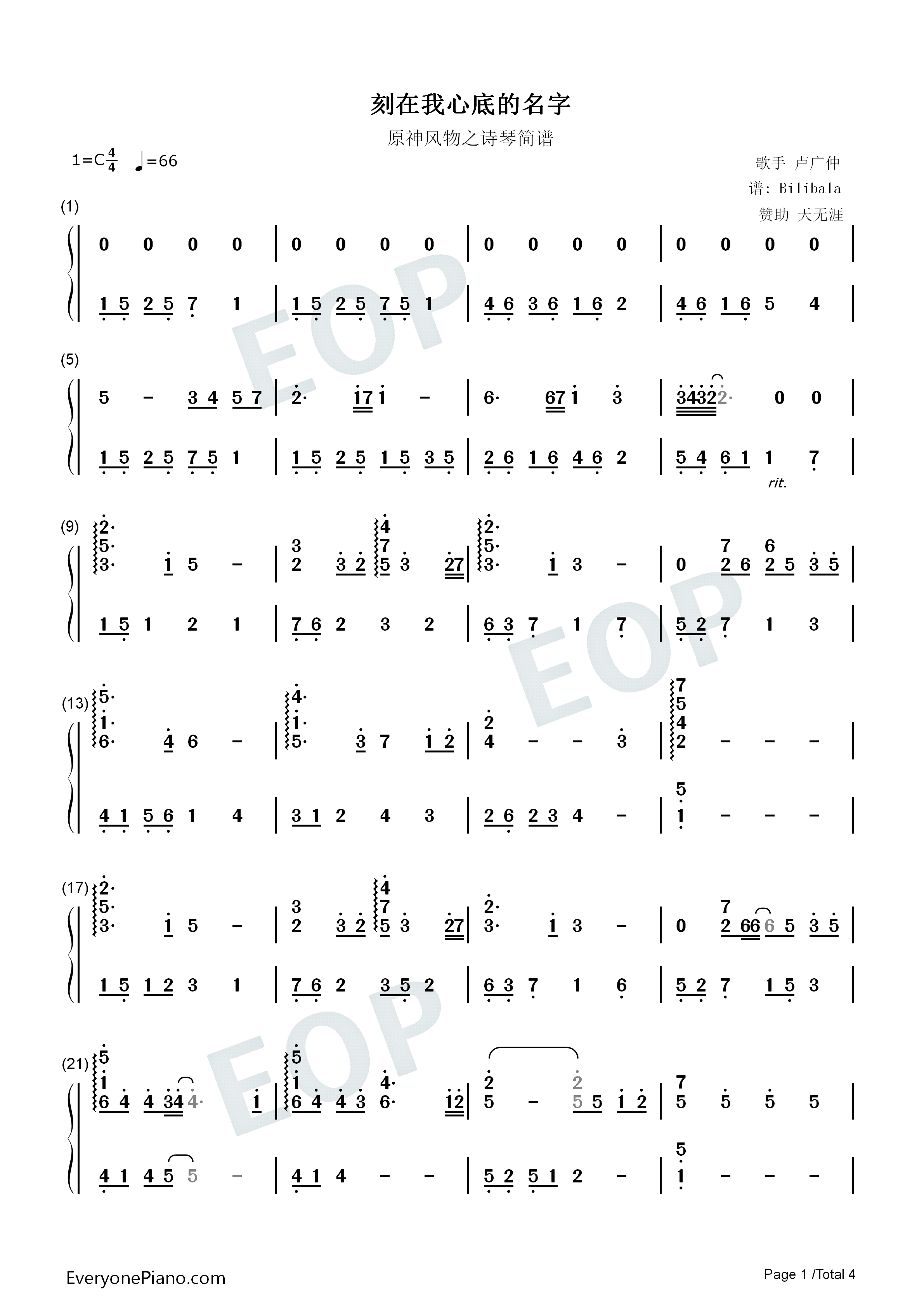 《卢广仲《刻在我心底的名字简谱》》内容来自于互联网,不能保证内容的准确性与完整性,仅供学习交流欣赏,请勿用于其它用途,内容版权归原作者及来源网站所有,如有侵犯到您的权益请来信告知,我们将及时删除。