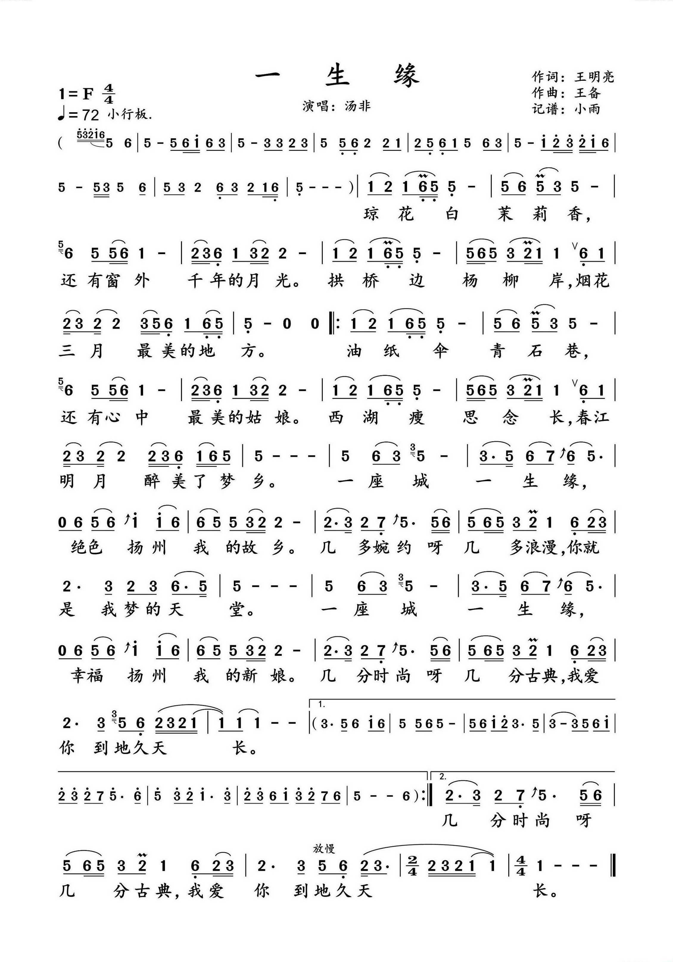 本文标题 《汤非《一生缘简谱》》,网址:https://www.21qupu.com/jianpu/26367.html