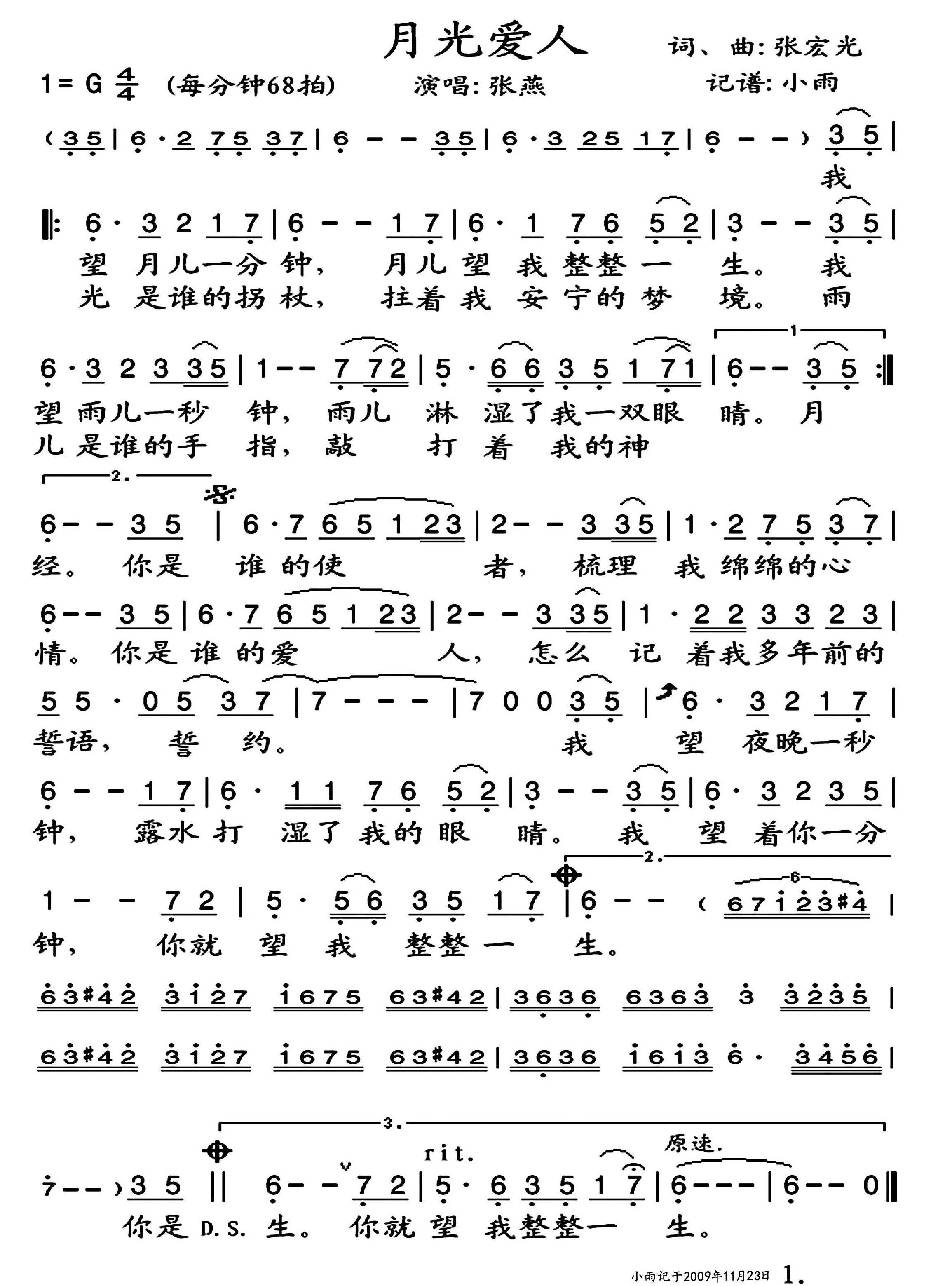 《张燕《月光爱人简谱》》内容来自于互联网,不能保证内容的准确性与完整性,仅供学习交流欣赏,请勿用于其它用途,内容版权归原作者及来源网站所有,如有侵犯到您的权益请来信告知,我们将及时删除。