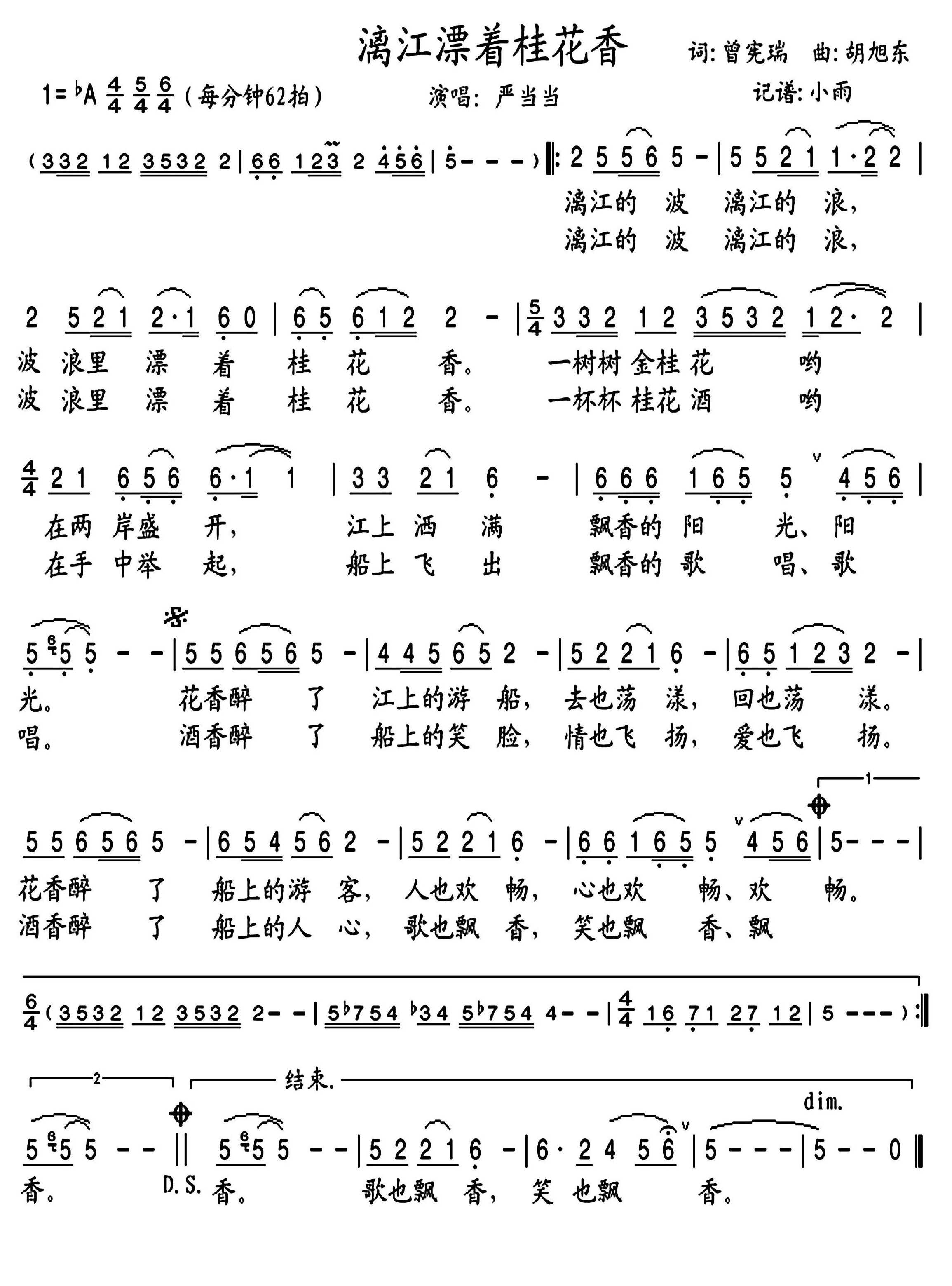 《严当当《漓江漂着桂花香简谱》》内容来自于互联网,不能保证内容的准确性与完整性,仅供学习交流欣赏,请勿用于其它用途,内容版权归原作者及来源网站所有,如有侵犯到您的权益请来信告知,我们将及时删除。