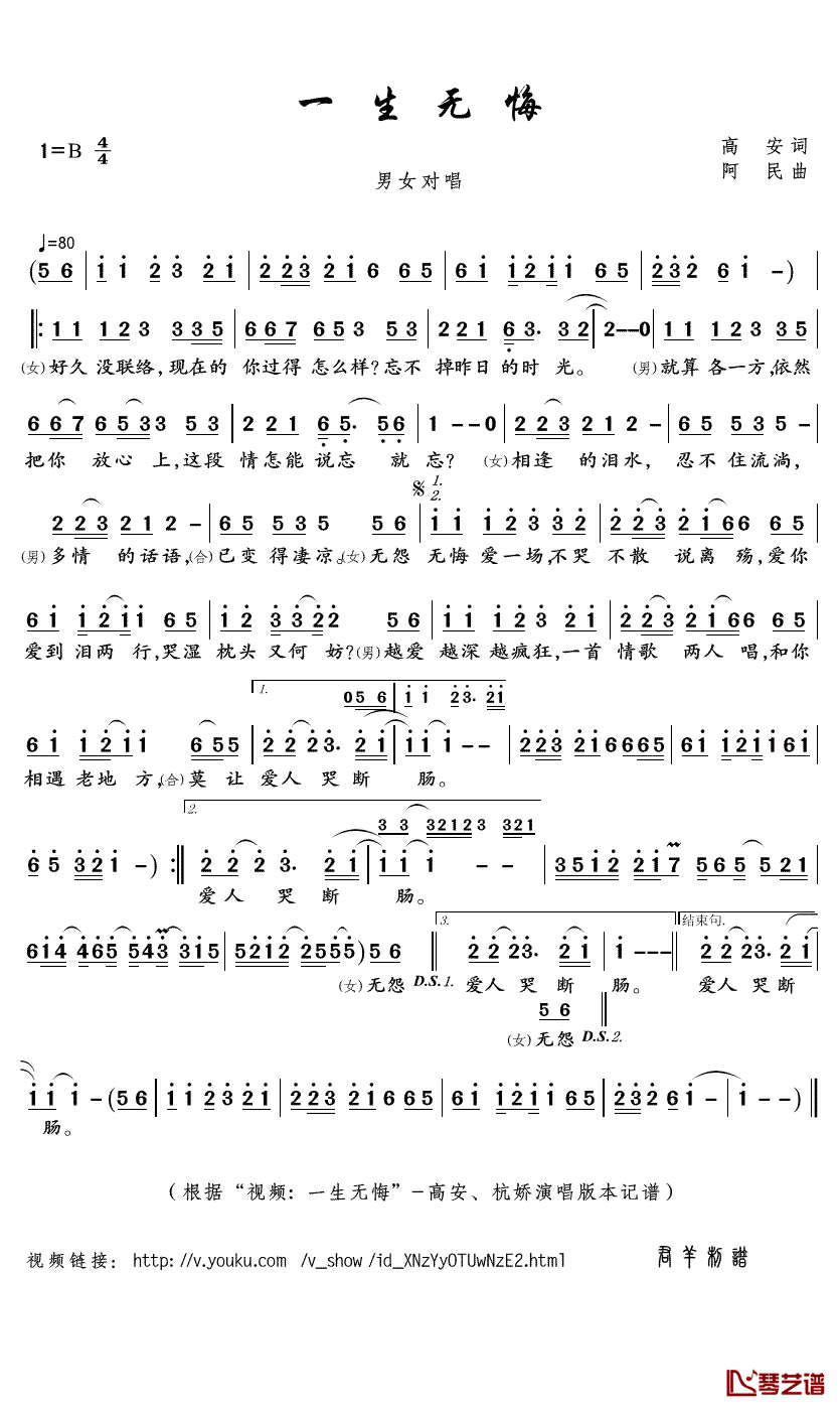 《高安/杭娇《一生无悔简谱》》内容来自于互联网,不能保证内容的准确性与完整性,仅供学习交流欣赏,请勿用于其它用途,内容版权归原作者及来源网站所有,如有侵犯到您的权益请来信告知,我们将及时删除。