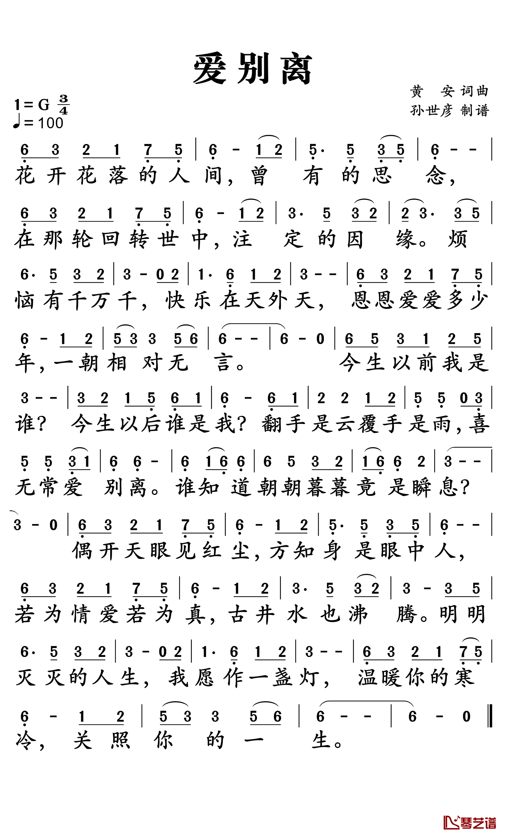 《黄安《爱别离简谱》》内容来自于互联网,不能保证内容的准确性与完整性,仅供学习交流欣赏,请勿用于其它用途,内容版权归原作者及来源网站所有,如有侵犯到您的权益请来信告知,我们将及时删除。