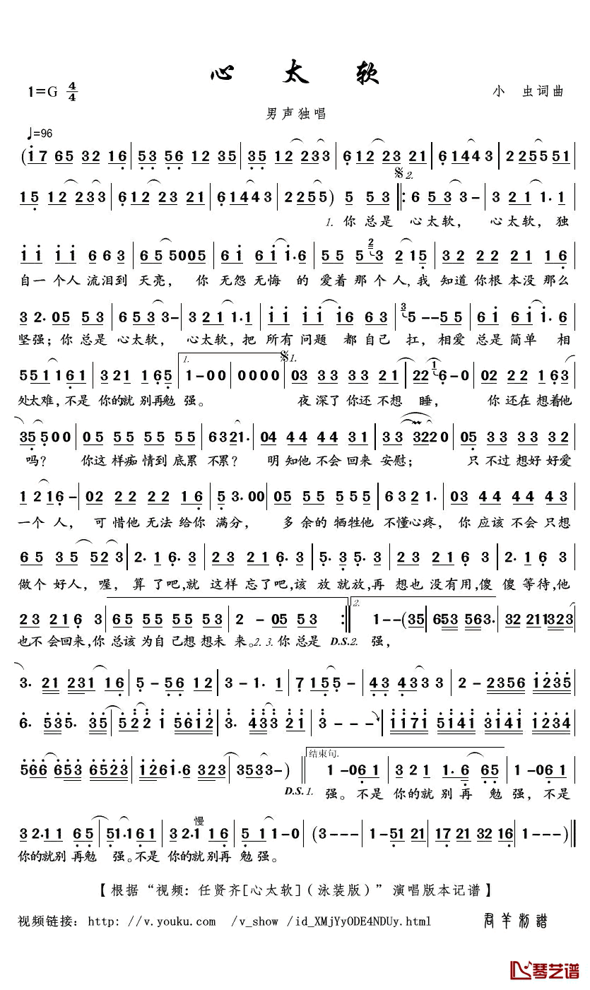 《任贤齐《心太软简谱》》内容来自于互联网,不能保证内容的准确性与完整性,仅供学习交流欣赏,请勿用于其它用途,内容版权归原作者及来源网站所有,如有侵犯到您的权益请来信告知,我们将及时删除。