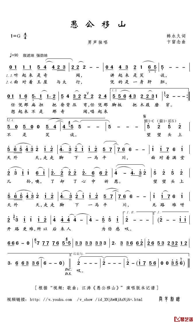 《江涛《愚公移山简谱》》内容来自于互联网,不能保证内容的准确性与完整性,仅供学习交流欣赏,请勿用于其它用途,内容版权归原作者及来源网站所有,如有侵犯到您的权益请来信告知,我们将及时删除。