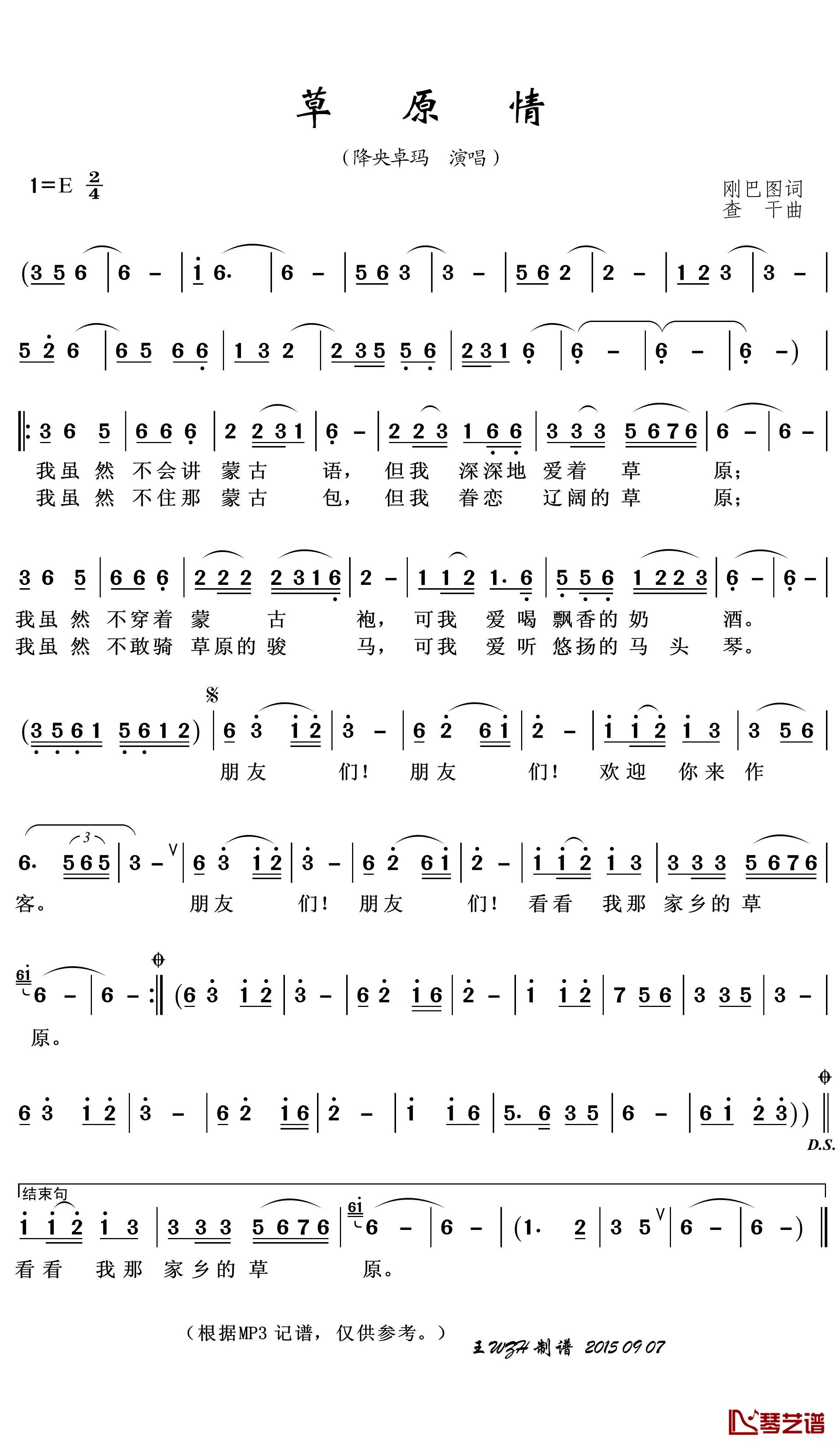 《降央卓玛《草原情简谱》》内容来自于互联网,不能保证内容的准确性与完整性,仅供学习交流欣赏,请勿用于其它用途,内容版权归原作者及来源网站所有,如有侵犯到您的权益请来信告知,我们将及时删除。