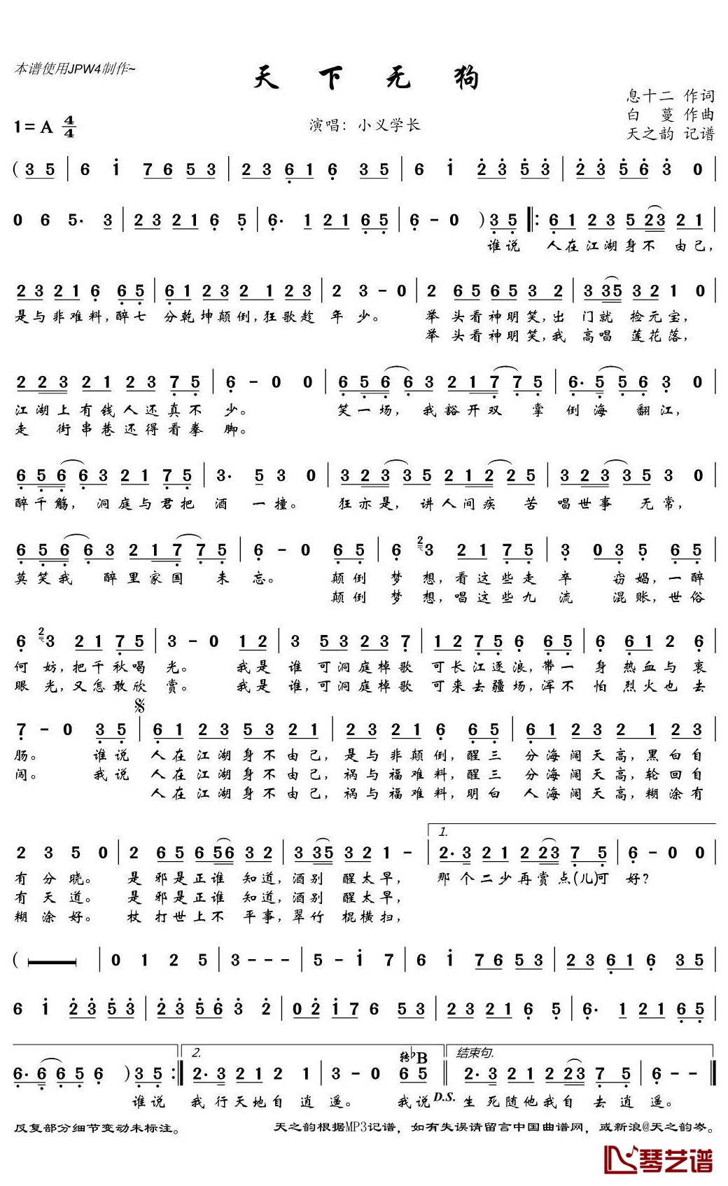 《小义学长《天下无狗简谱》》内容来自于互联网,不能保证内容的准确性与完整性,仅供学习交流欣赏,请勿用于其它用途,内容版权归原作者及来源网站所有,如有侵犯到您的权益请来信告知,我们将及时删除。