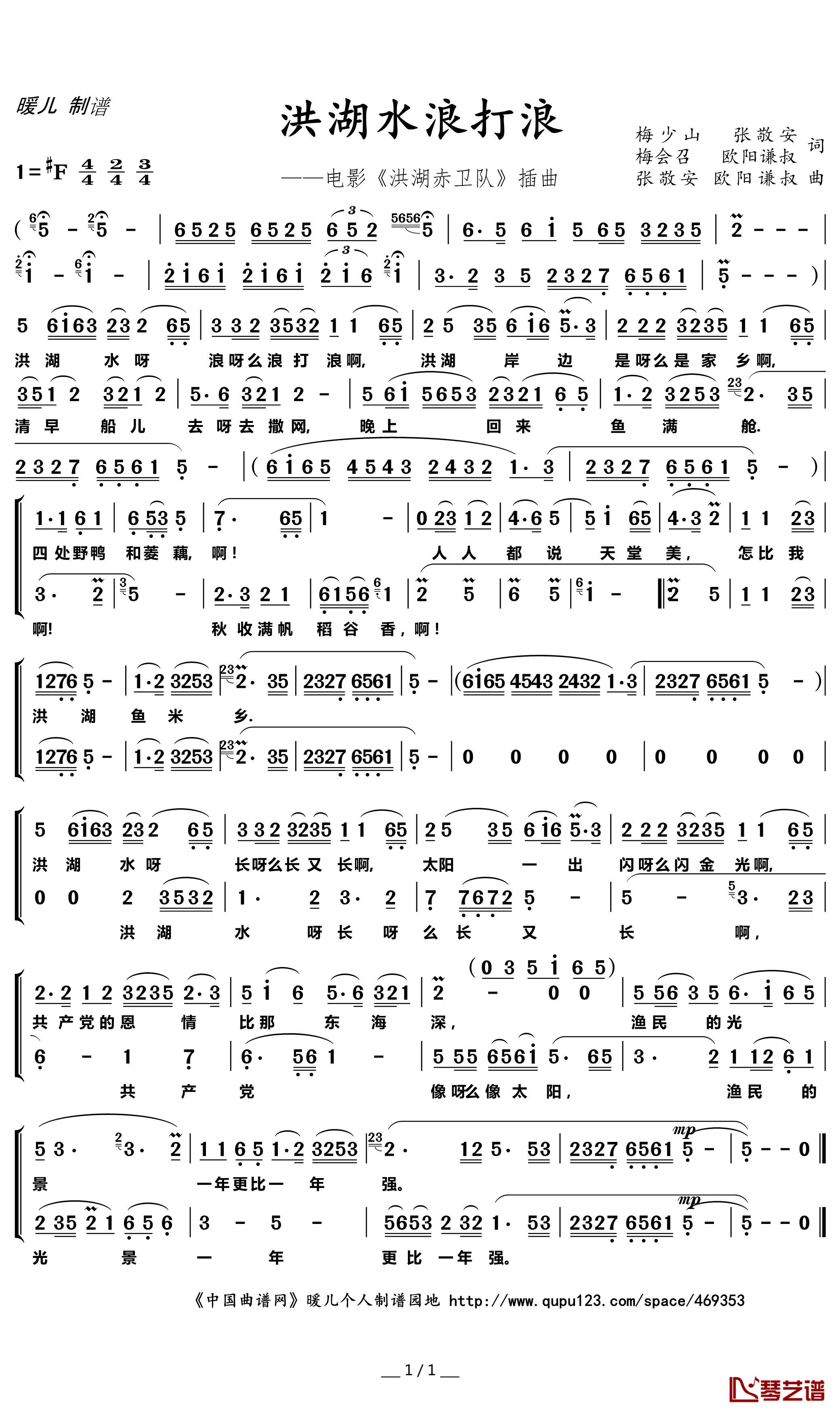 王玉珍/傅凌《洪湖水浪打浪简谱》