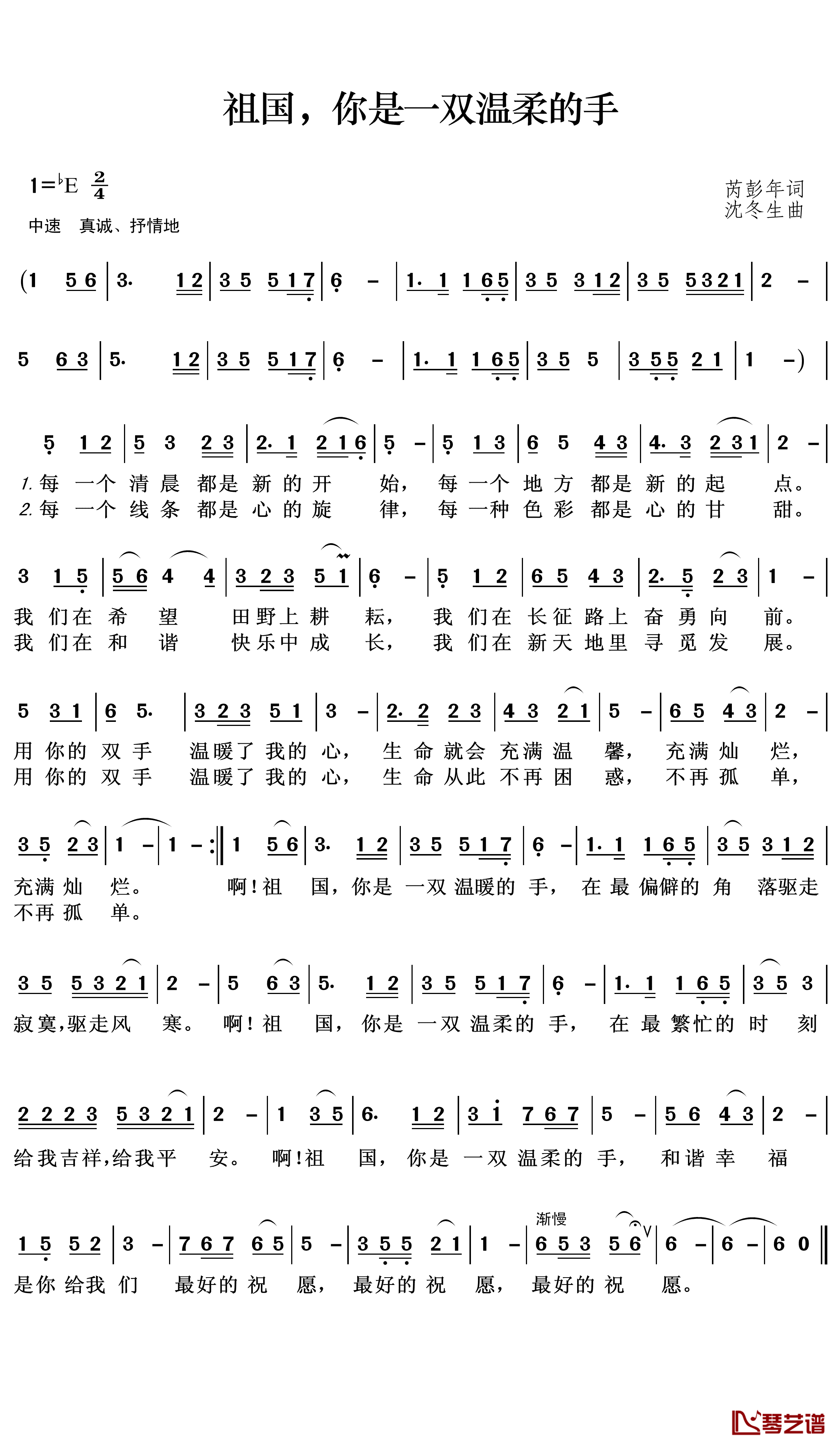 闰格格《祖国,你是一双温柔的手简谱》