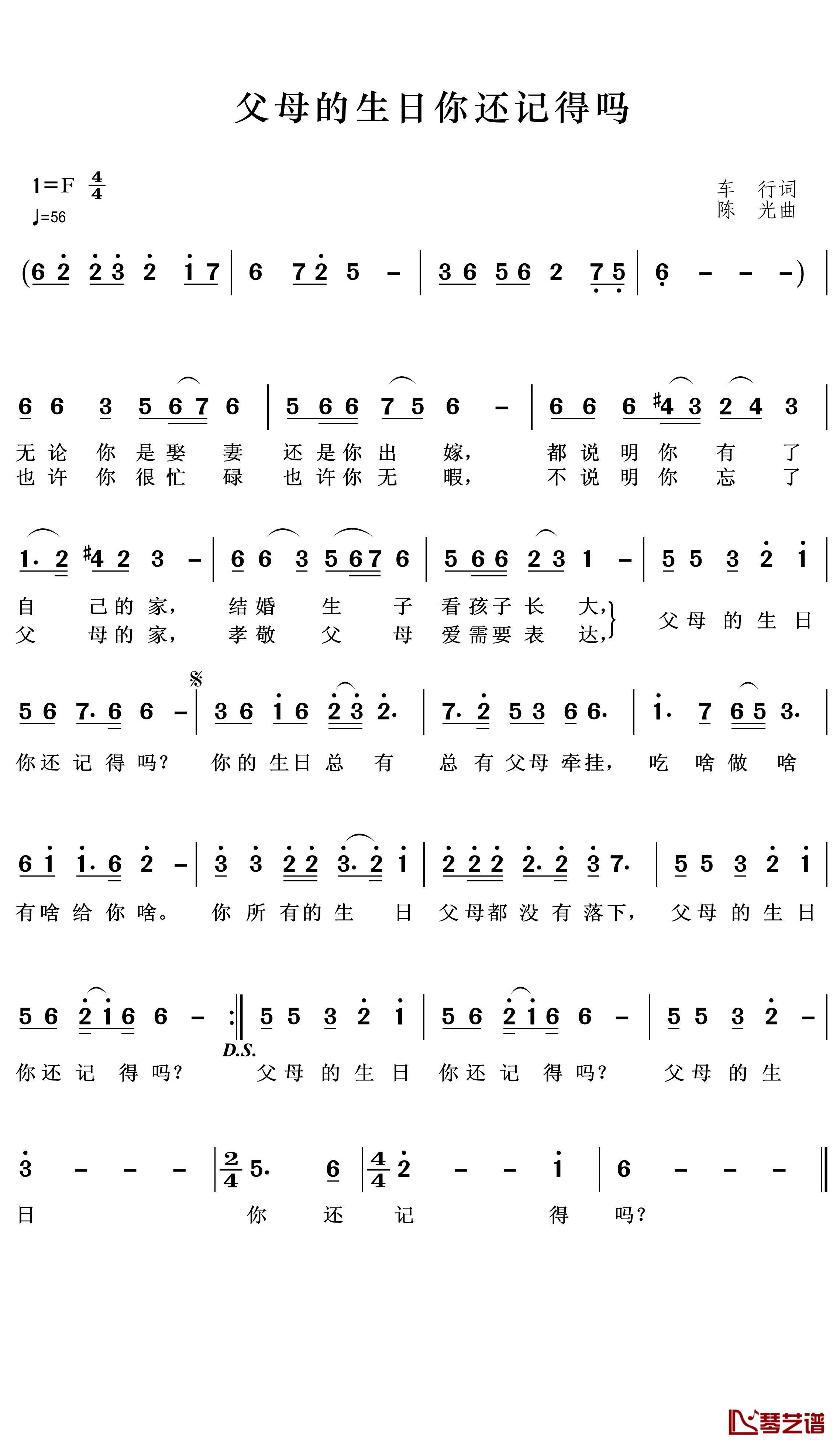 刘和刚《父母的生日你还记得吗简谱》