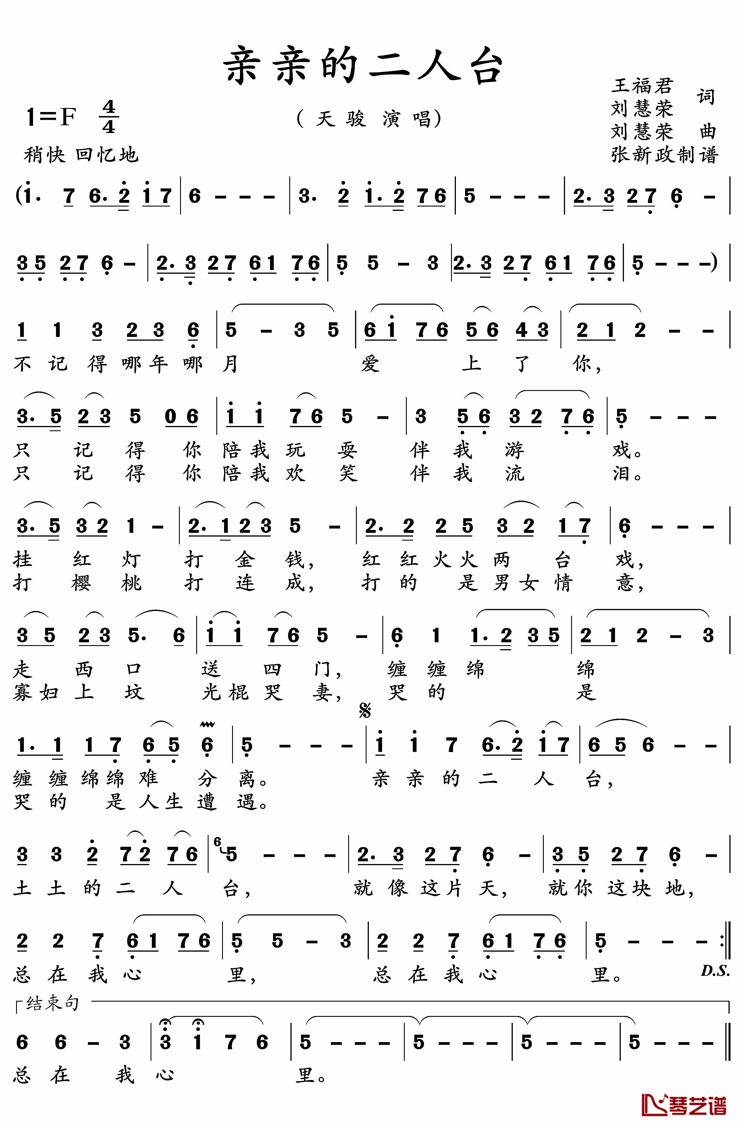 《天俊《亲亲的二人台简谱》》内容来自于互联网,不能保证内容的准确性与完整性,仅供学习交流欣赏,请勿用于其它用途,内容版权归原作者及来源网站所有,如有侵犯到您的权益请来信告知,我们将及时删除。